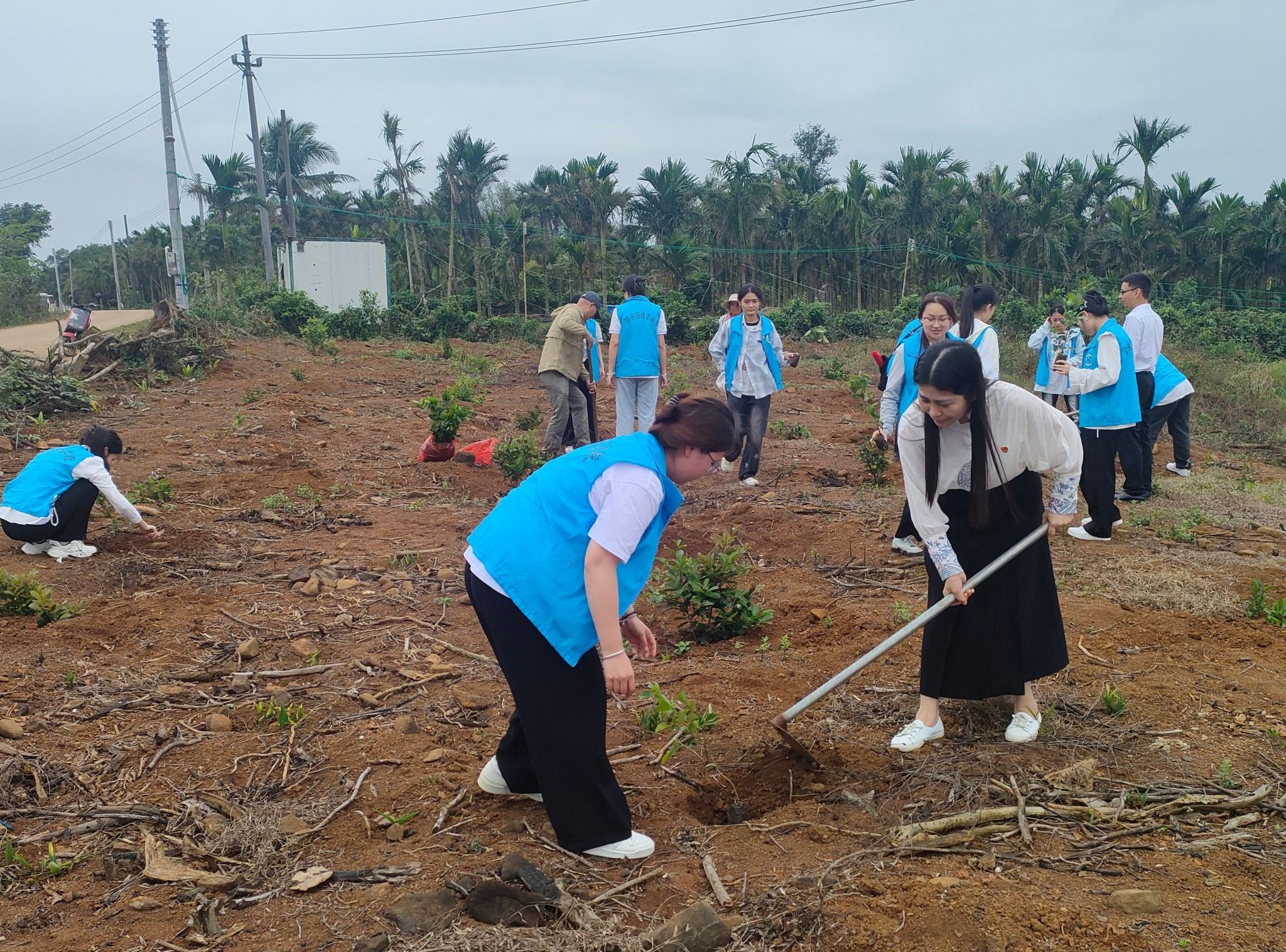 活动当天,在海经贸派驻清泉村乡村振兴工作队干部郑磊的带领下,师生党员与村民共同在清泉村生态林区栽种了200余株山柚茶树苗。植保专业农艺师现场指导种植技术,教授土壤改良和苗木管护方法,为村民提供科学指导。清泉村脱贫户李大姐表示:“以前种树成活率低,现在有专家教我们,将来扩大种植,果子能卖钱,生态还能变好!”