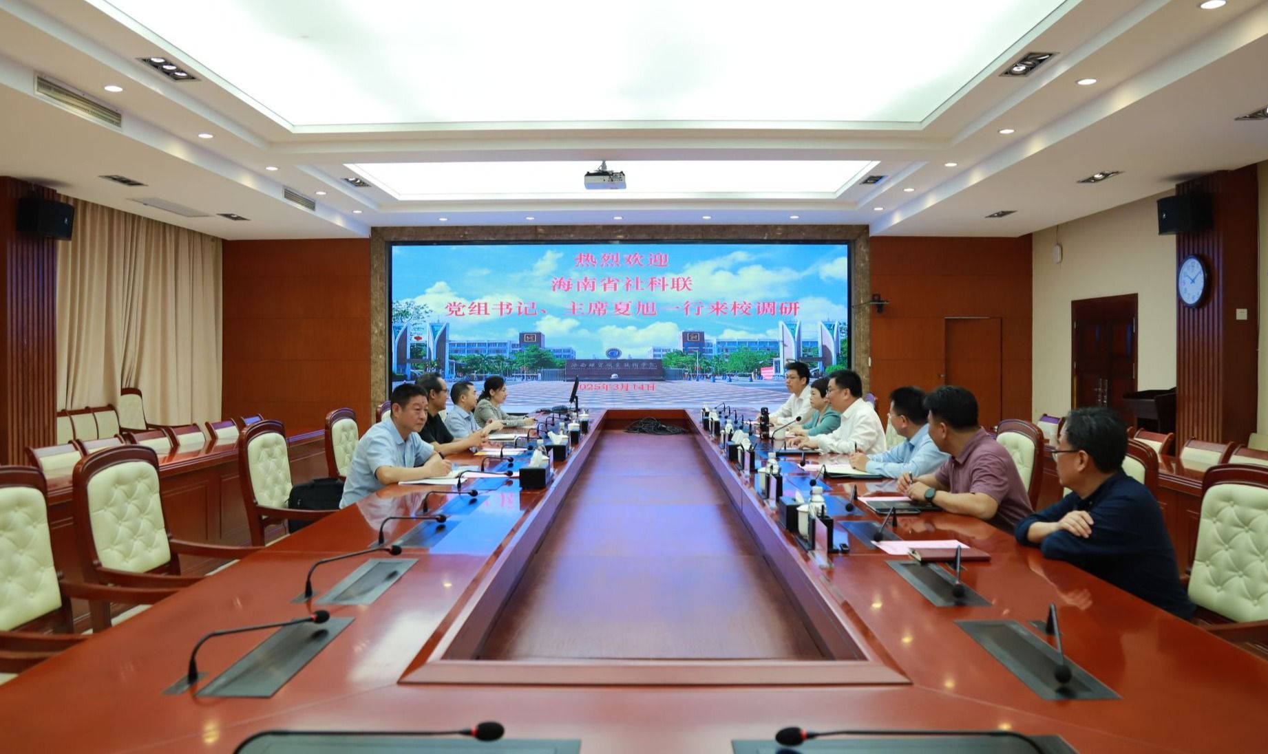 2025年3月14日,海南省社科联党组书记、主席夏旭一行4人来到betway西汉姆联官网,调研学校哲学社会科学工作情况。学校党委书记王华,党委副书记、校长崔昌华,党委委员、副校长万力维出席座谈会。
