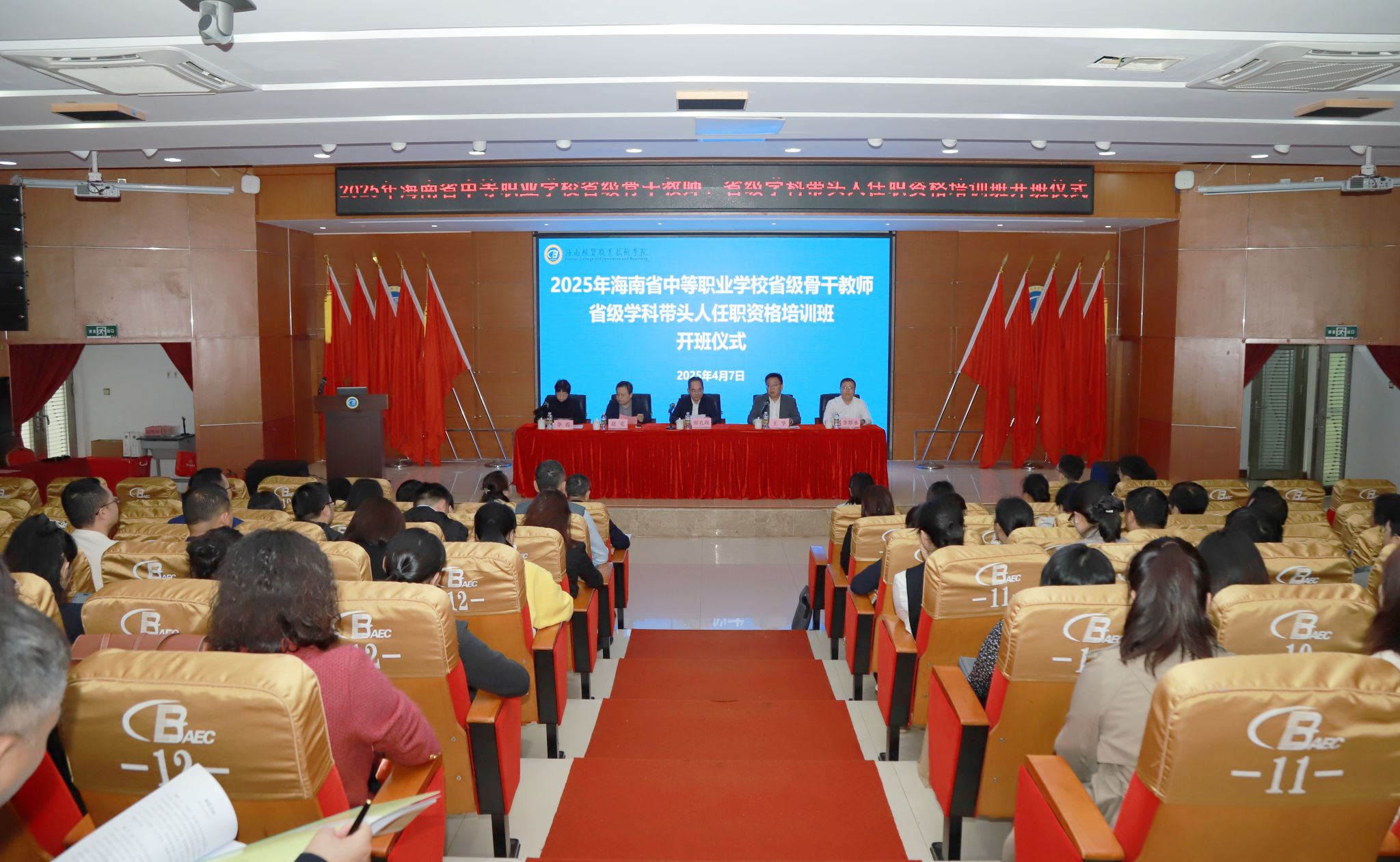 2025年4月7日,由海南省教育厅主办,betway西汉姆联官网承办的海南省中等职业学校省级骨干教师、省级学科带头人任职资格培训班在学校学术交流中心正式开班。省委教育工委委员、省教育厅党组成员、副厅长邢孔政作开班动员讲话,学校党委书记王华致欢迎辞。