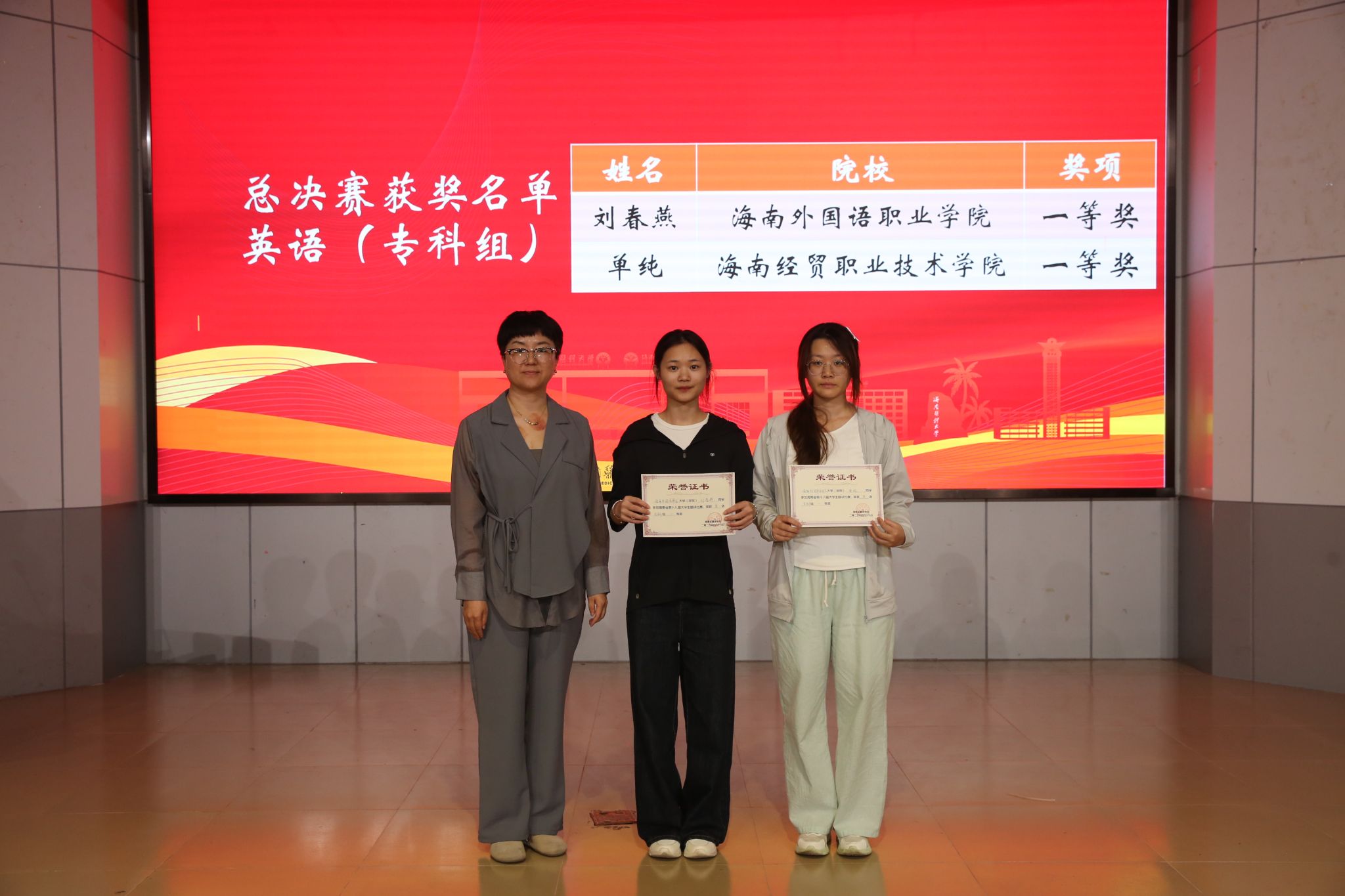外国语学院学生单纯(右一)荣获英-汉专科组一等奖