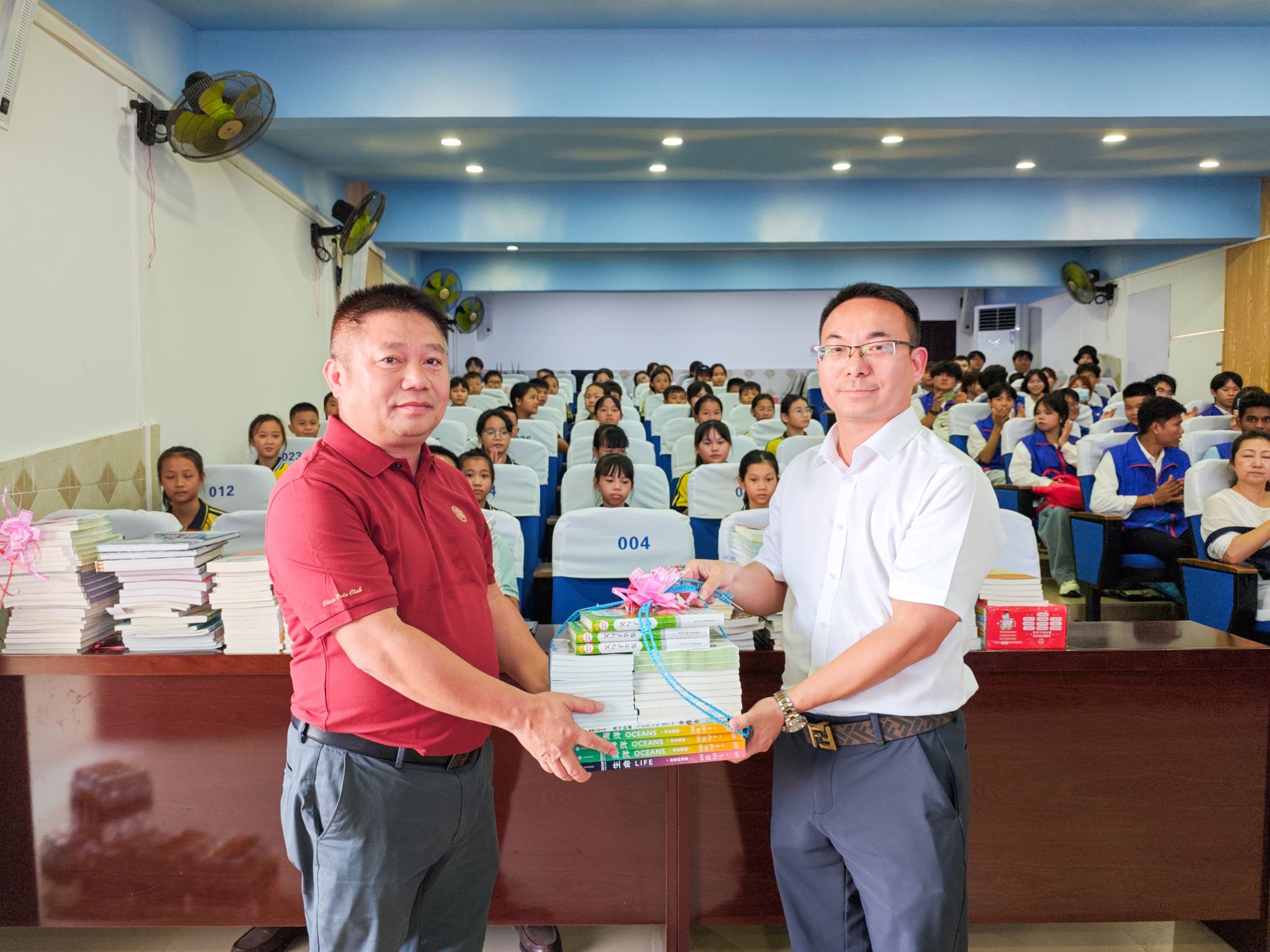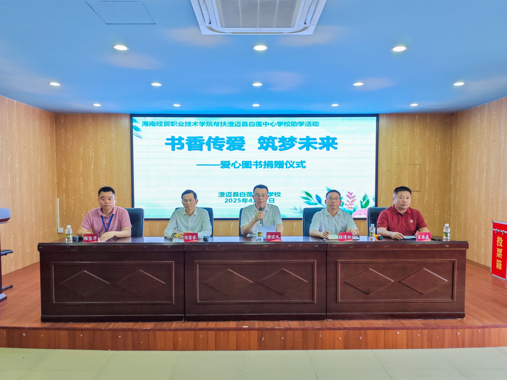 海经贸团委书记张清松表示,希望这些书籍能成为白莲学子拓展视野的窗口,成为陪伴你们成长的良师益友。今天的捐赠不是一次性的善举,而是长期帮扶的开端,海经贸将始终与白莲中心学校并肩前行。澄迈县教育局党组书记徐正义向海经贸慷慨善举表示衷心感谢,希望白莲中心学校在海经贸的帮助下,奋发向上,充分利用好这些书籍资源,传承和发扬中华优秀传统文化,为澄迈教育高质量发展贡献力量。澄迈县白莲中心学校校长王永友向海经贸师生致以诚挚谢意,并鼓励白莲学子立大志、明大德,未来以所学回馈社会,传递这份温暖。