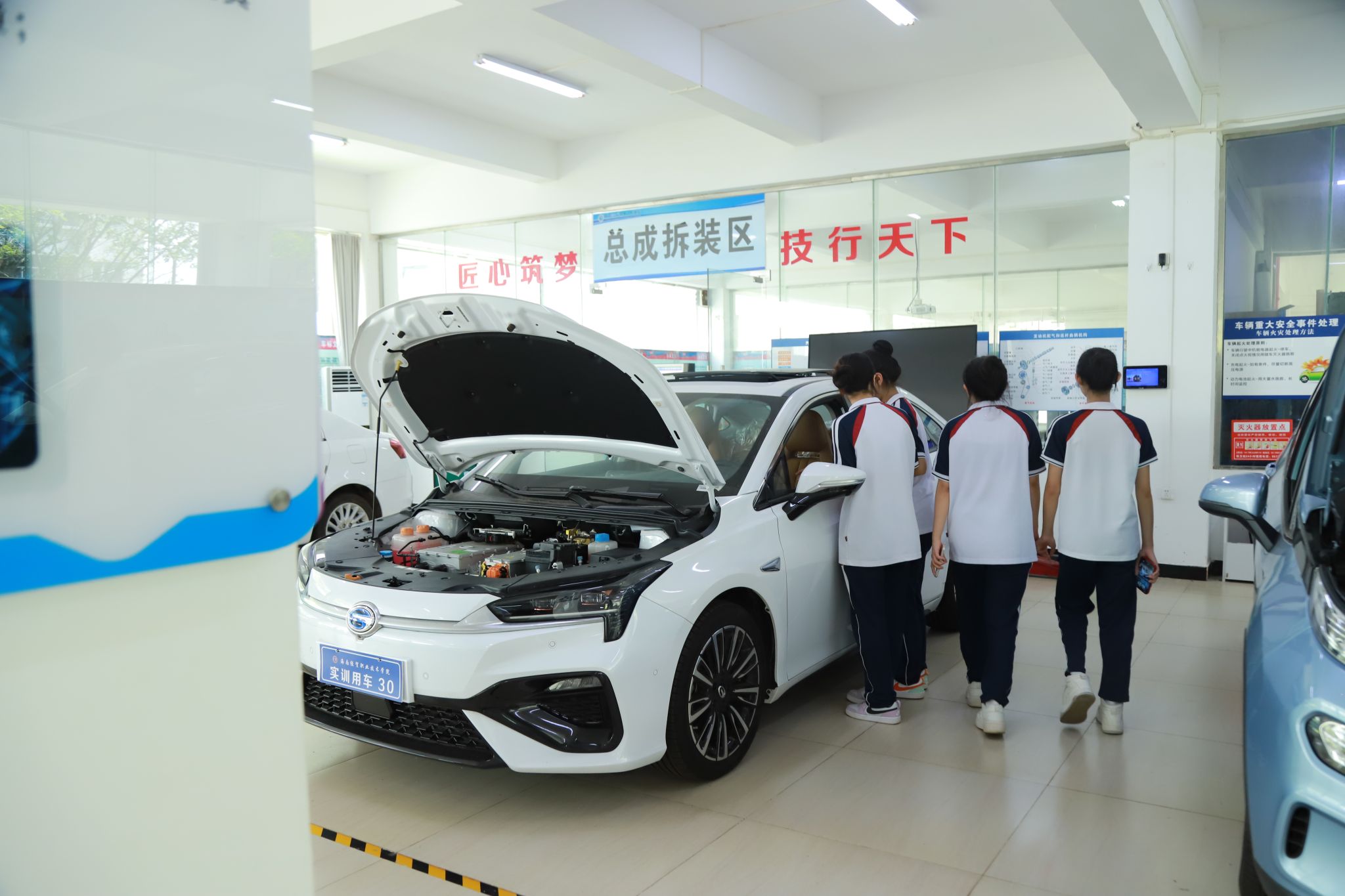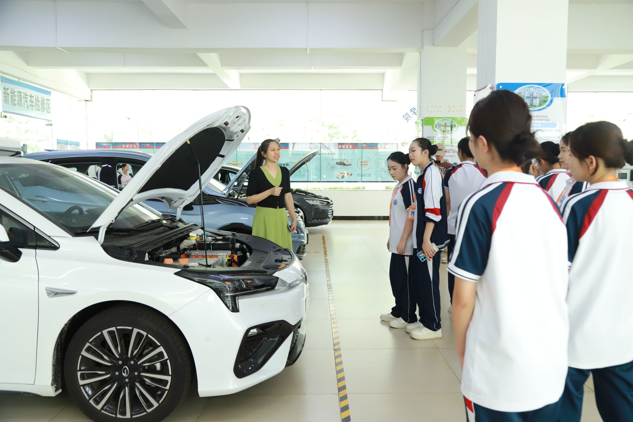 在机电与汽车工程学院实训室,专业教师为中职师生介绍我国新能源汽车发展现状,随后带领大家参观汽车模型收藏馆。馆内陈列着经典跑车、老爷车等模型,均为原厂授权、按原车比例打造,限量版藏品尤其吸睛。此外,老师还为中职学生详细讲解了实训室内新能源汽车实训设备。