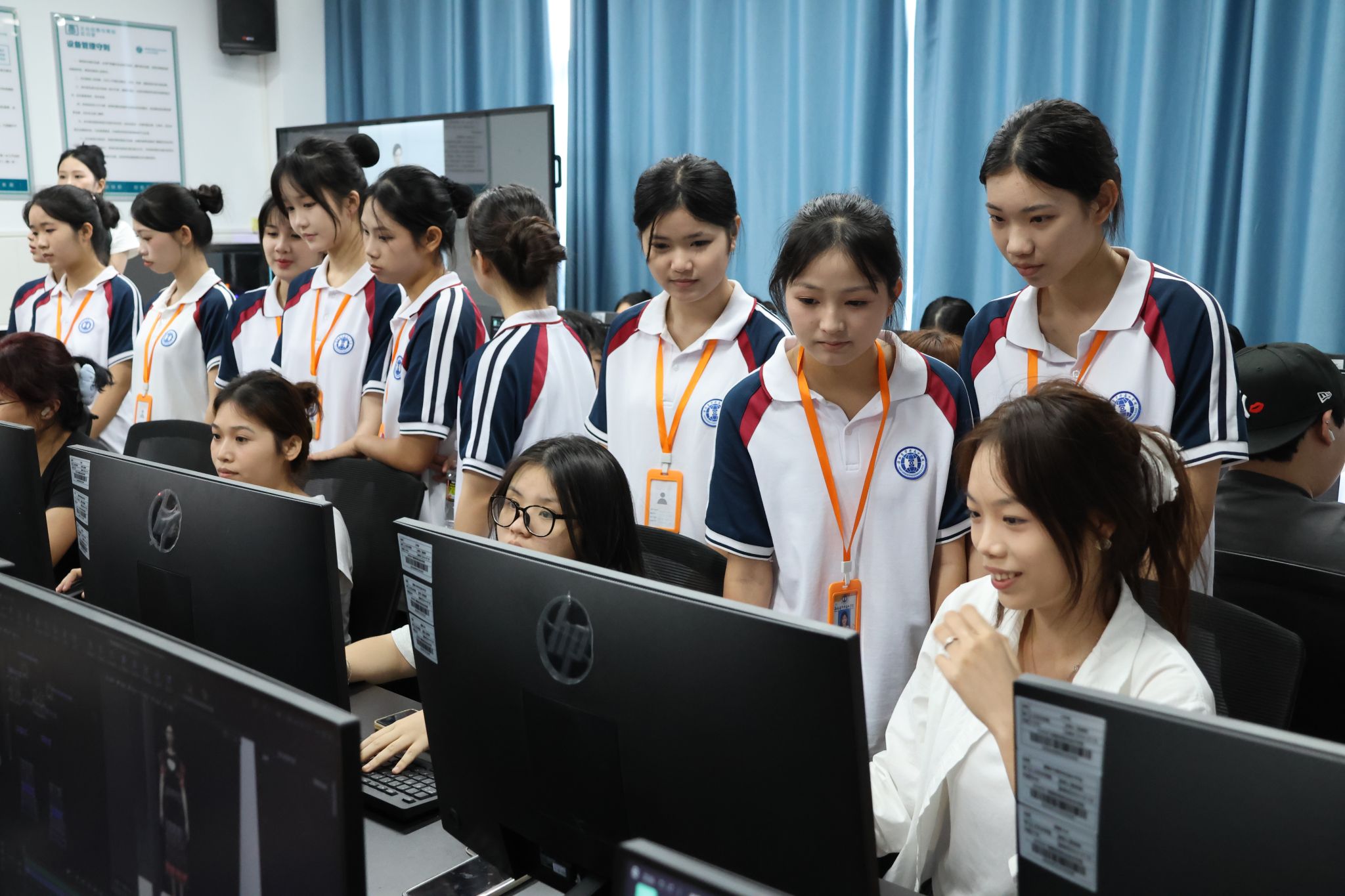 在人文艺术学院,学弟学妹们开启了一场时尚与技艺的探索之旅。他们感受服装缝制工艺中一针一线的精湛,惊叹服装立体裁剪塑造的独特版型。大家还亲自体验黎族织锦,学习双面绣技艺,触摸国家级非物质文化遗产的雅韵。学长学姐们演示了服装3D建模设计的创新应用。大家亲眼见证科技为时尚产业带来的变革,激发了对未来职业的憧憬和向往。