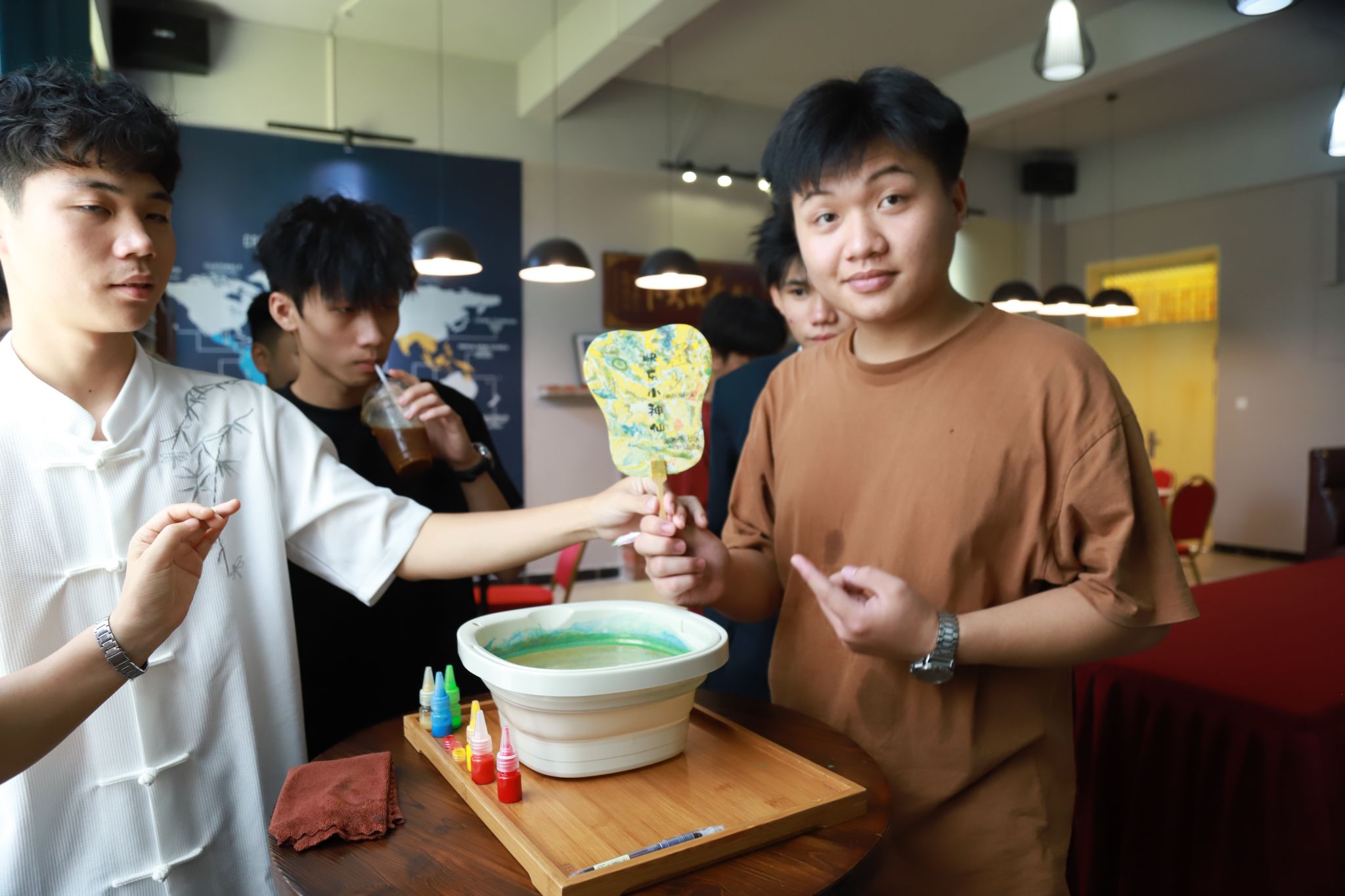 在国际旅游学院,学长学姐们大秀调饮技能,咖啡特调、新式饮品轮番登场,“椰青美式”“风味冰拿铁”“缤纷气泡水”等创意调饮风味绝佳。优雅的茶艺展示,让同学们领略到中华文化里礼仪、美学的多重意蕴。此外,中职学生还动手制作漆扇,参与“数据传声筒探案”挑战赛,沉浸式体验大数据分析与酒店应用课堂的魅力。