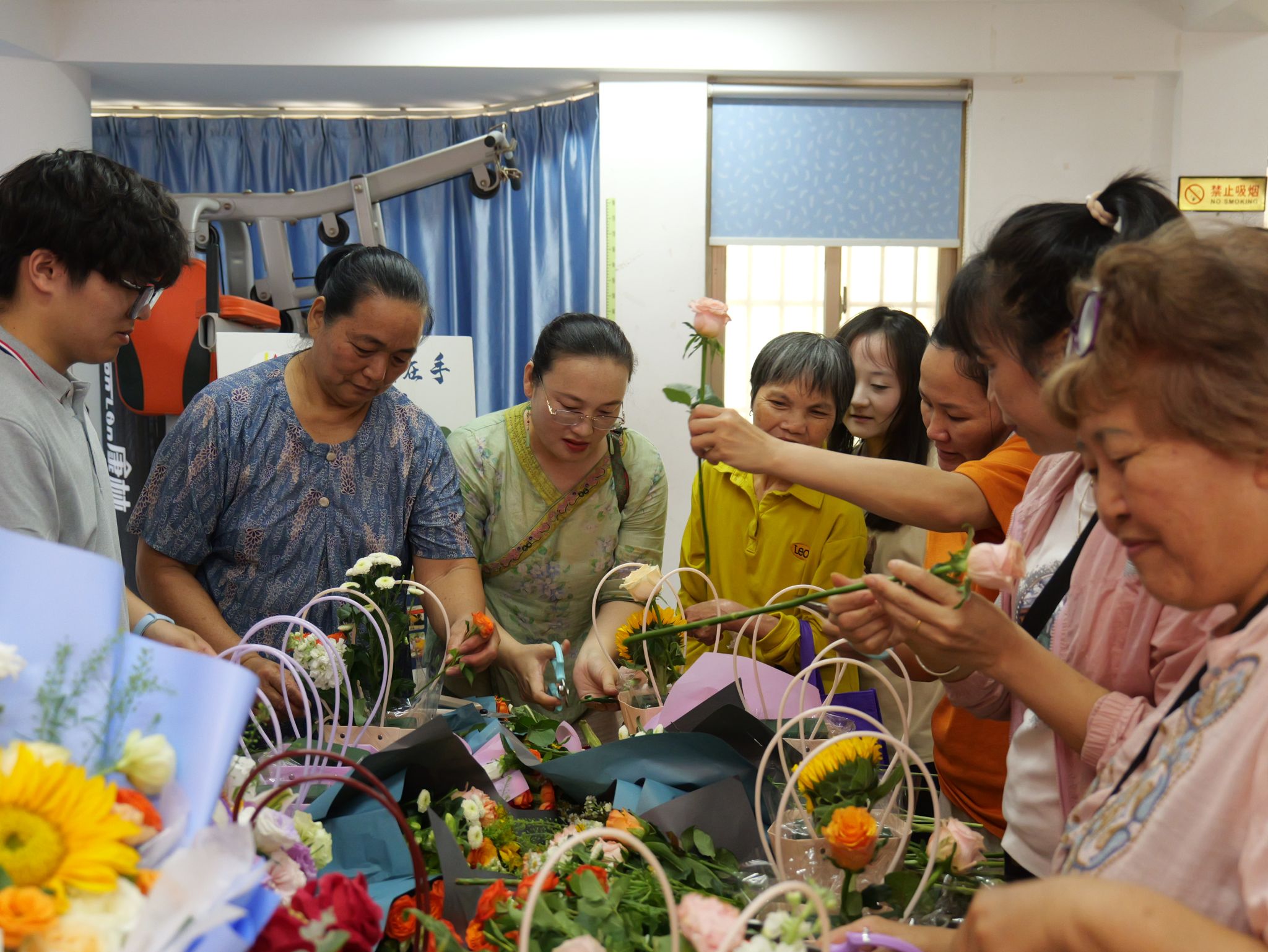 灰塑融合航天元素,悉心精致描画;干花点缀扇面,配色别致精美;花艺剪纸国风满满,心意创意无限……人文艺术学院郭欣宇等同学把专业技能和对生活的热爱传递给社区居民朋友们。大家在这里欣赏美、感受美、创造美。