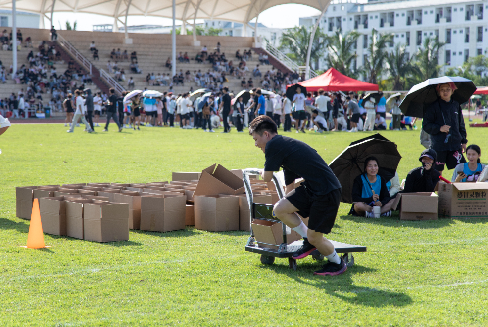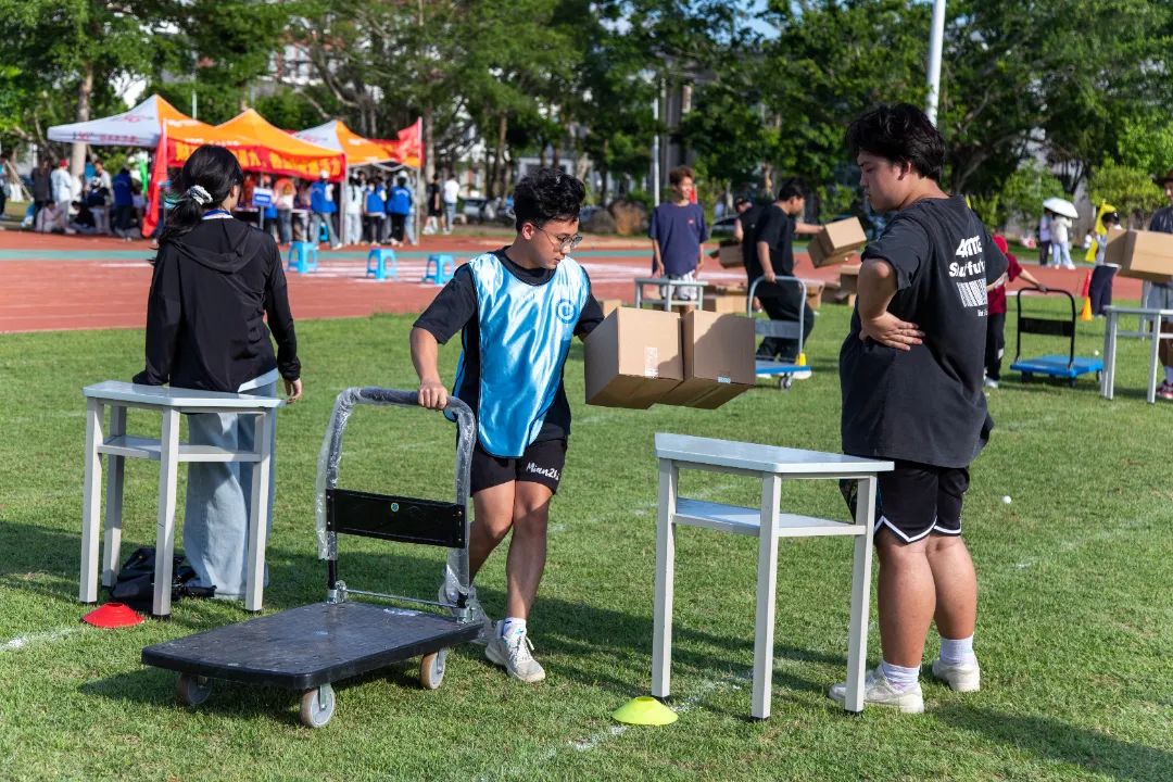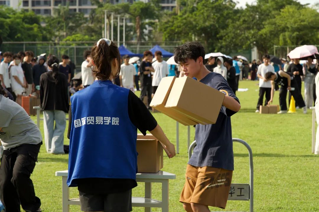 乒乓球是货物,纸箱是日用品仓、生鲜物品仓和文娱用品仓,桌子则是仓储区……参赛队员们在模拟的物流作业场景中,灵活运用所学的仓储管理、运输调度、配送优化等专业知识,完成接力任务。国际贸易学院的“智慧物流接力大闯关”项目紧密围绕物流管理的核心环节精心设计,巧妙地将专业理论知识与实际操作技能融入其中,寓教于乐的方式,有效强化了学生对专业知识的理解与运用能力,同时充分调动了他们的参与热情。