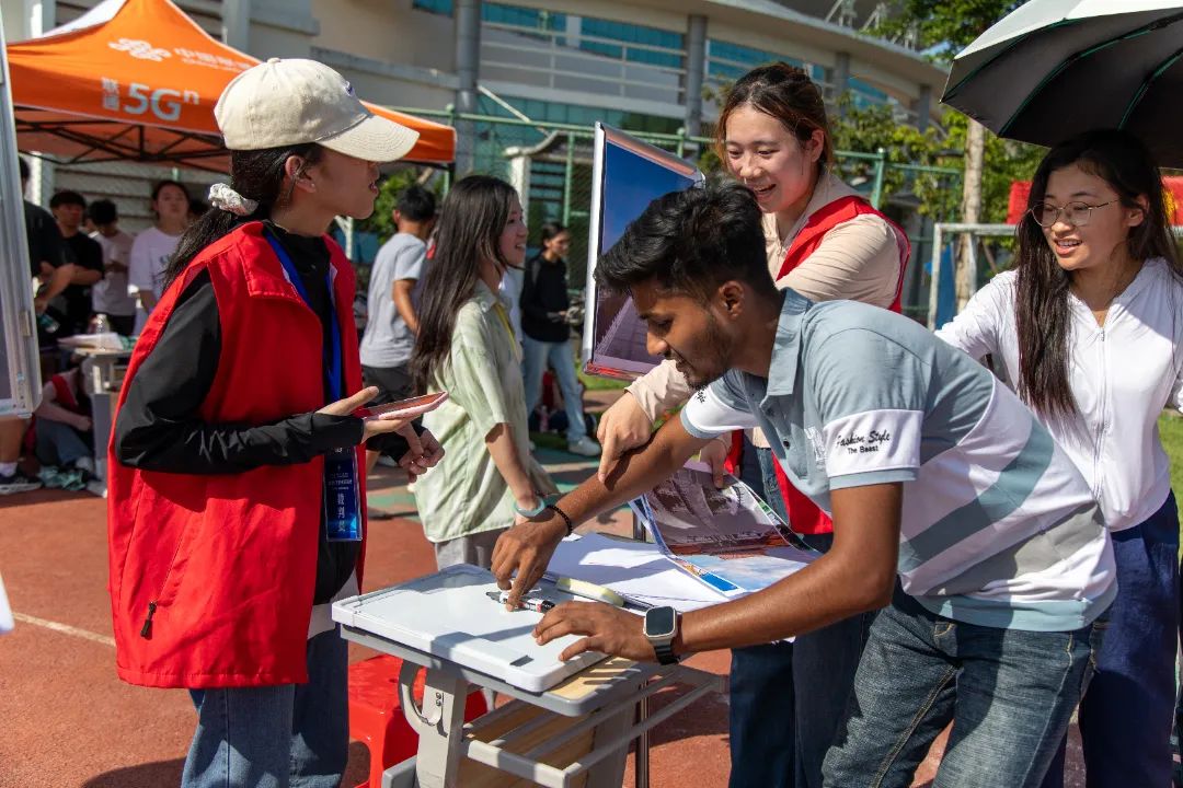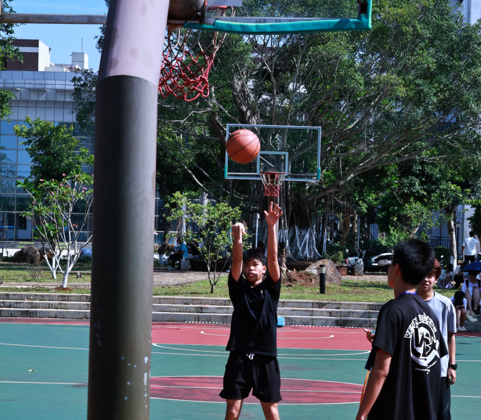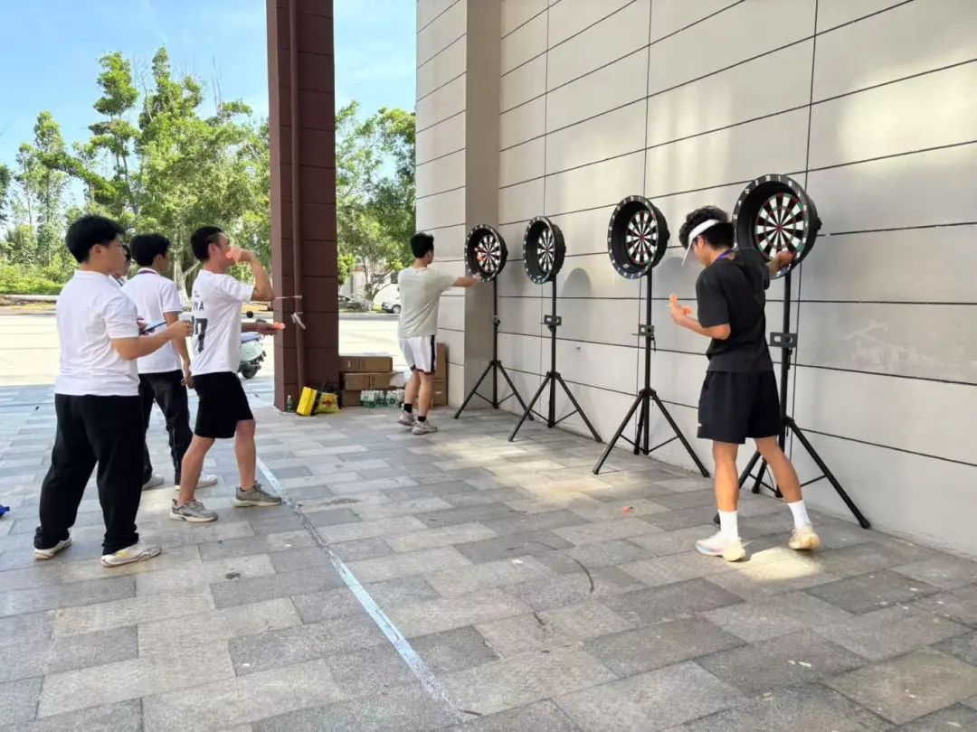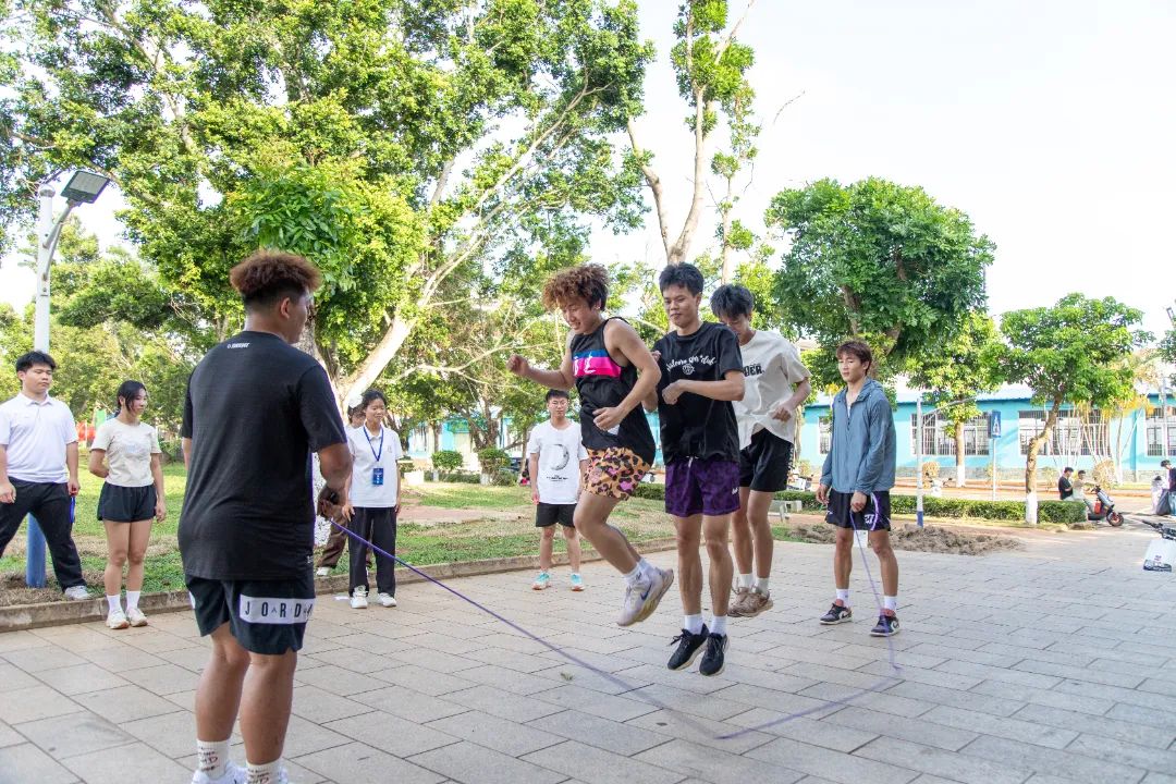 体育与健康学院的“经贸寻踪”定向越野赛以“定向越野”专业课和飞镖课为基础,结合海南史、自贸港史、校史、学校地形地标等元素,设置了答题挑战、拍照分享、飞镖、跳绳、篮球等5个打卡点,让参赛者在运动中感受文化魅力。参赛团队自主选择打卡路线,紧密协作,完成指定挑战即可通关。