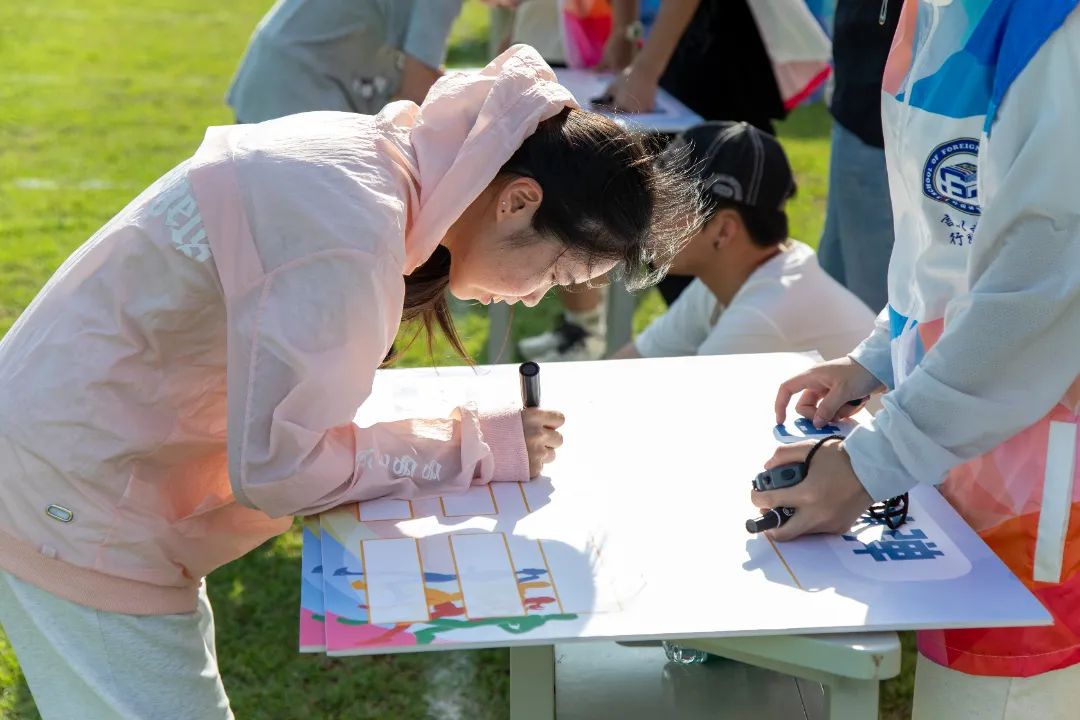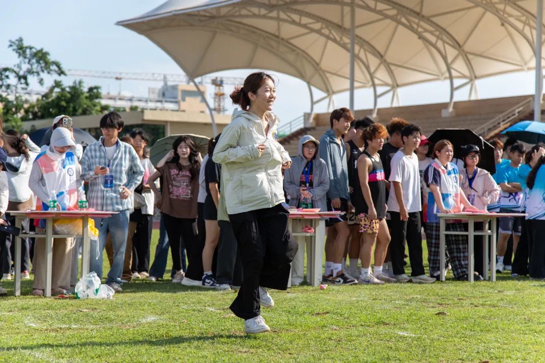 迅速记忆便利贴上的单词,随后沿着指定路线单脚跳跃至终点,并在白板上准确写出该单词。外国语学院“单词‘弹弹弹’”项目以语言专业为基础,巧妙融合英语单词学习与体育运动,不仅考验了参赛者的身体协调能力和运动技巧,更在轻松愉快的氛围中助力他们巩固英语单词记忆,激发外语学习兴趣,有效提升语言实践运用能力。