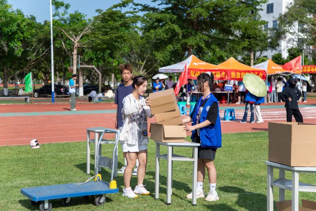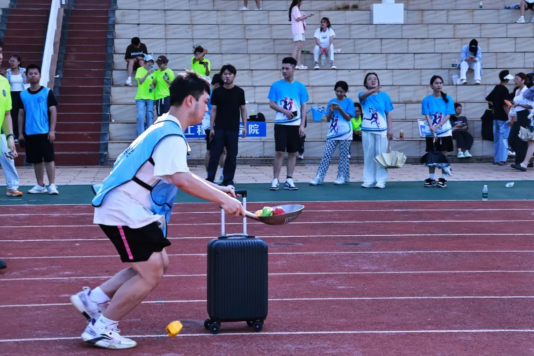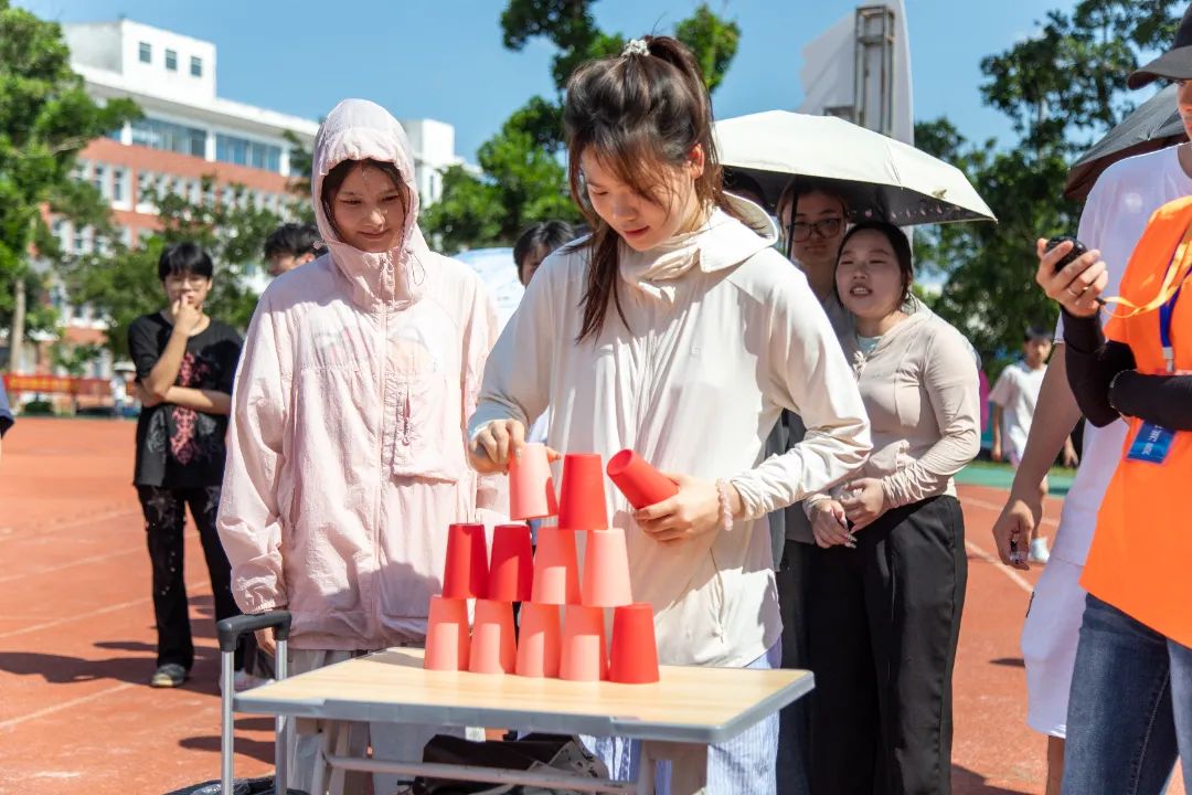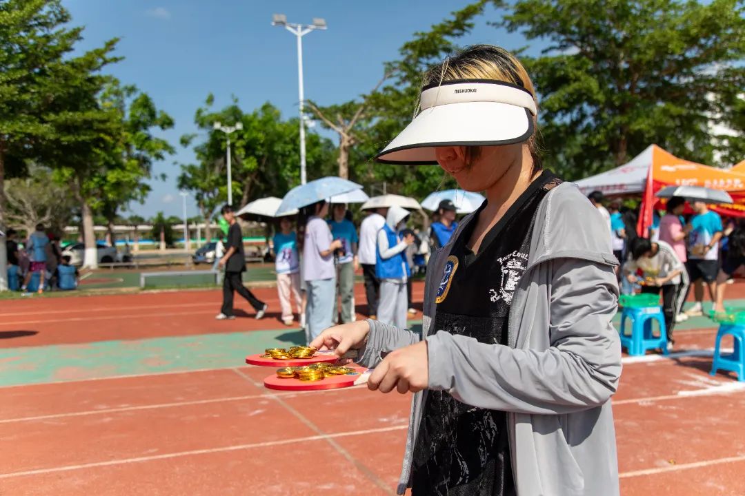 财务管理学院的“财源滚滚来”项目将财务管理专业知识与职业精神融入趣味挑战。乒乓球拍“叠取”金币,模拟财务工作中资金筹集的过程;高栏杆障碍模拟企业经营中面临的市场波动、政策变化等风险;精确统计金币数量,类比财务人员对资金的准确记录与分析。参赛队员们小心翼翼,平衡叠满金币的乒乓球拍,按要求越过障碍物。“加油!加油!胜利啦!”大家为获胜的队伍欢呼鼓掌。