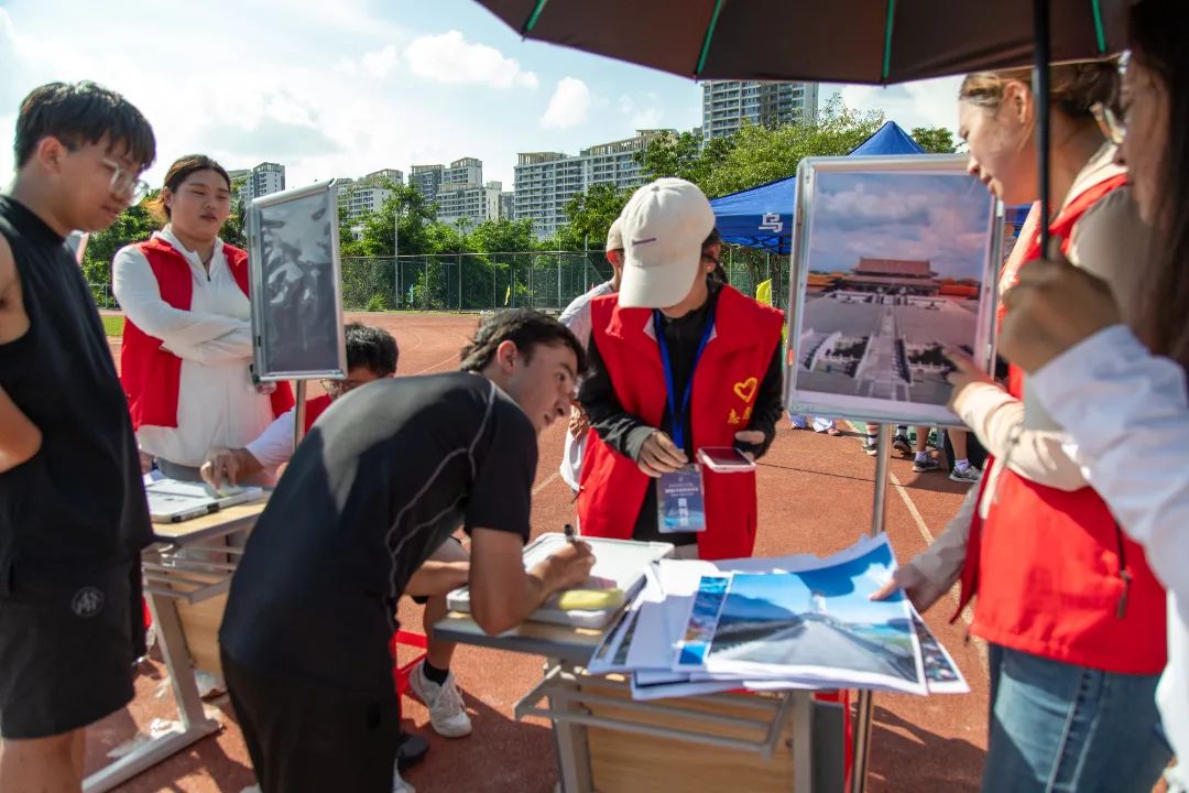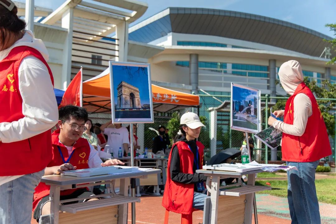 国际教育学院、乌拉尔学院设置了“旅游景点识别接力赛”项目,聚焦“导游服务”与“景点研学”两大核心模块,将传统课堂教学转化为沉浸式实践活动,吸引了中外学生的热情参与。随着比赛开始的信号发出,参赛队员们冲向旅游景点摆放区。在摆放区,挂板上整齐排列着世界各地著名景点的图片,队员们需从中随意取下一张,随后带着图片全力奔跑至终点处,迅速在白板上写下图片中景点所在的国家、城市及景点名称。队员们需接力完成比赛,正确填写全部信息,才能获得相应分数。