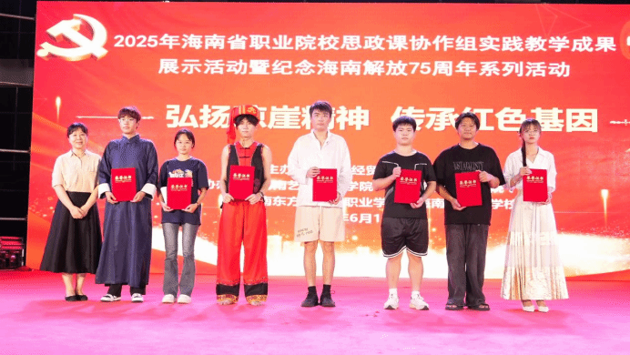 6月19日,2025年海南省职业院校思政课协作组实践教学成果展示活动暨纪念海南解放75周年系列活动之大型情景剧展演在betway西汉姆联官网举行。省教育厅职业教育与成人教育处、思政处、高等教育处相关负责人,betway西汉姆联官网、海南艺术职业学院、海口旅游职业学院、海南东方新丝路职业学院、海南省商业学校相关负责人出席活动。