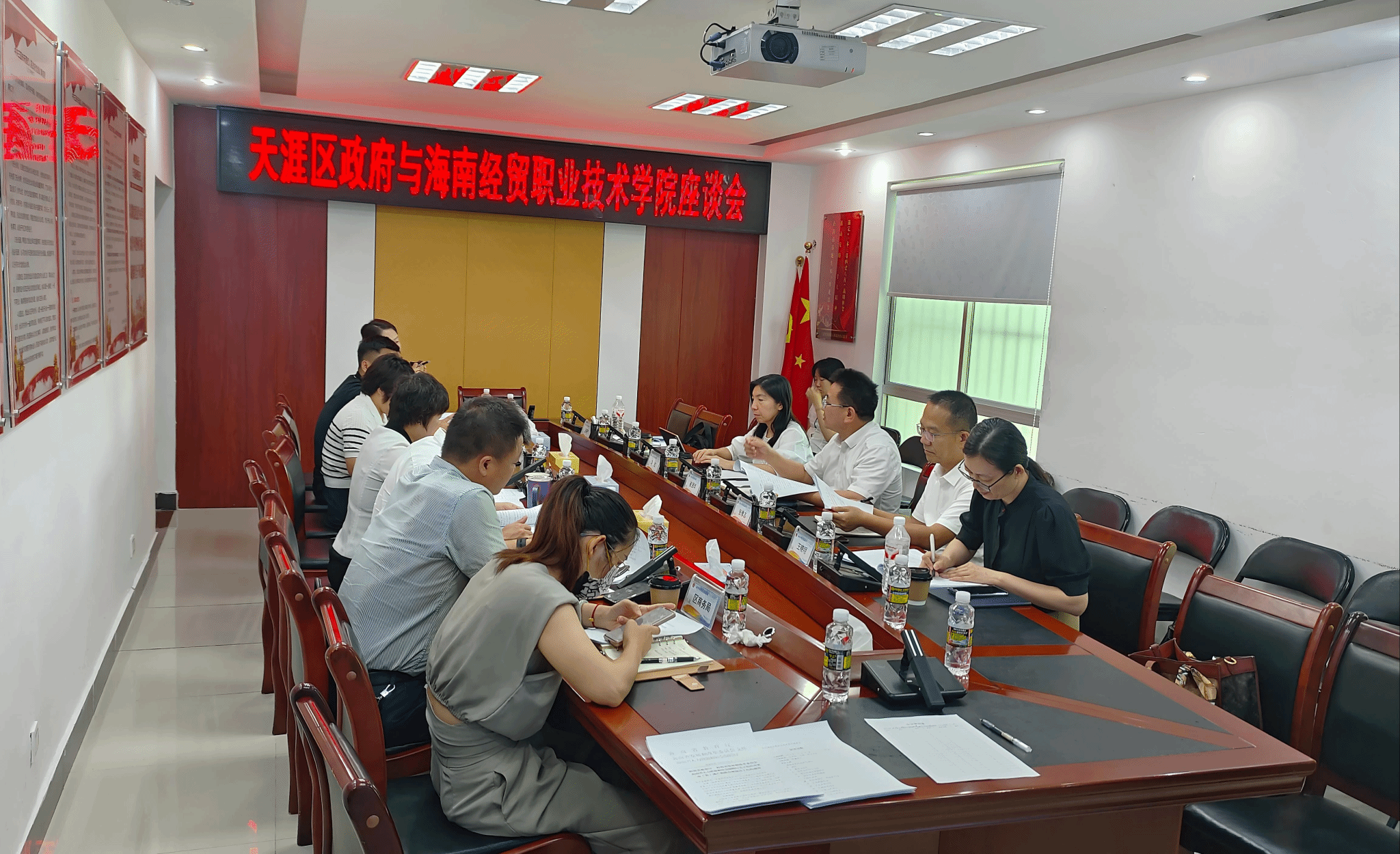 在与天涯区人民政府座谈交流中,崔昌华介绍了学校发展建设情况,希望与天涯区政府加强校政合作,紧密结合天涯区的重点产业布局和产业园区发展需求,共同建设市(县)域产教联合体,通过整合双方优势资源,为天涯区产业的高质量发展提供坚实的人才和智力支持。三亚市天涯区区委副书记、区长陈潇介绍了天涯区的区位优势、重点产业以及产业园区的建设情况,希望通过市(县)域产教联合体建设,双方紧密协作,为天涯区重点产业的持续健康发展培养和输送更多高技能人才,为海南自贸港建设贡献双方的智慧与力量。