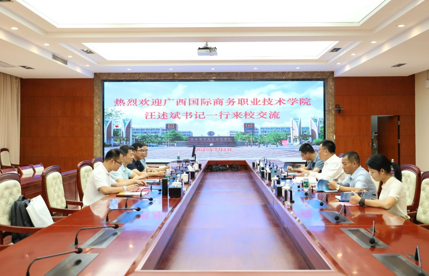 2025年7月1日,广西国际商务职业技术学院党委书记汪述斌一行4人来到betway西汉姆联官网,交流“双高”建设、产教融合、校企合作等相关工作经验。学校党委书记王华热情接待了汪述斌一行。