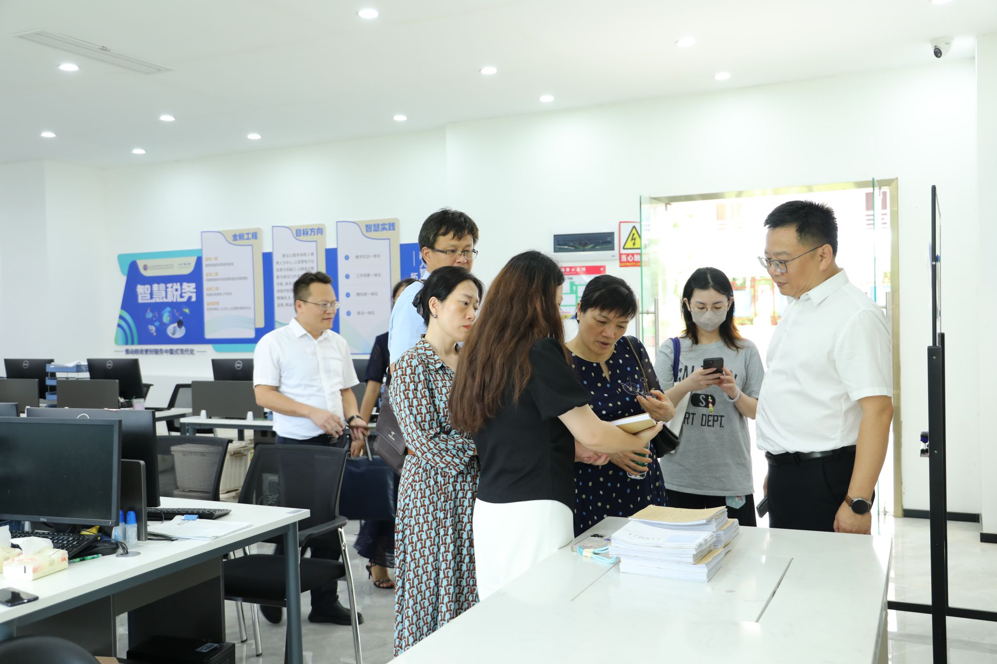 王华陪同钟文菲一行参观学校智慧旅游产教融合实训基地、数智财务产教融合实践基地。