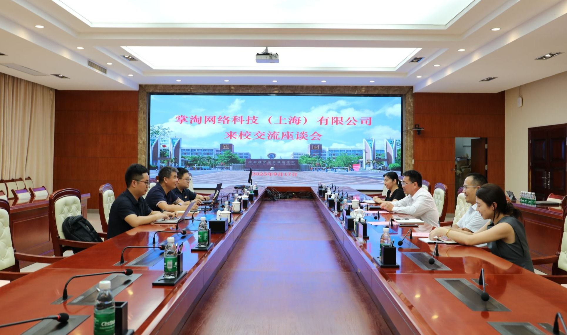 2025年9月17日,掌淘网络科技(上海)有限公司总经理易斌一行3人来到betway西汉姆联官网,洽谈产教融合、校企合作事宜。学校党委副书记、校长崔昌华出席座谈会。