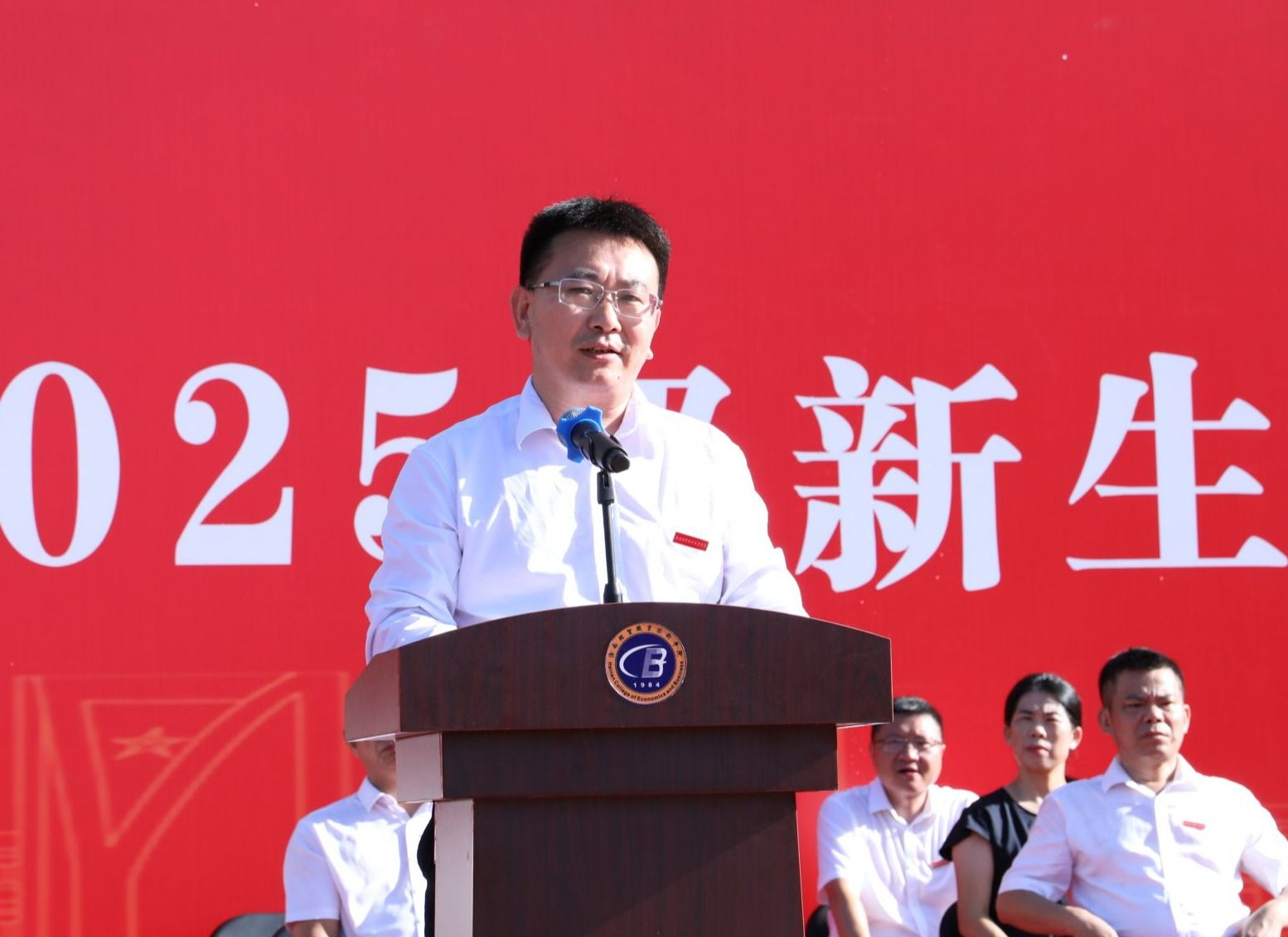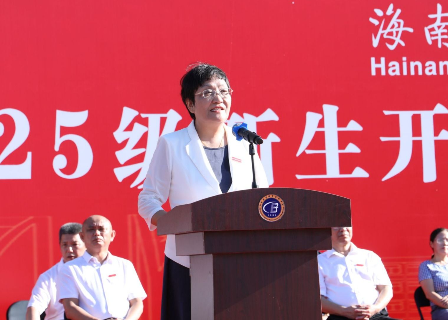 崔昌华对各位新同学的到来表示热烈欢迎与衷心祝贺。他深情回顾学校近年来的发展历程,描绘办学路上的坚实足迹,向新生们展望了学校长远发展规划与目标愿景,并围绕“未来”一词,向全体新生送上殷切寄语和成长期许。他说,职业教育的未来是真正与产业同频、与时代共进的教育;学校的未来,是与海南自贸港共同成长、扛起职教龙头使命的征程;同学们的未来,是在大变局中抓住新机遇、实现出彩人生的未来。学校会尽一切努力为同学们提供更多资源、更暖支持、更大舞台,希望同学们不忘初心、敢梦敢为,努力成为海南自贸港建设中最可靠、最闪亮的青年力量。