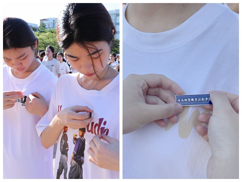 在庄严的国歌声中,开学典礼正式开始。王华、崔昌华为新生代表佩戴学校徽章。台下全体新生起立,同步佩戴学校徽章。蓝色的金属徽章映着朝阳泛起细碎的光,在这一刻,新同学们与海经贸的联结被郑重镌刻,人生旅程从此和学校紧紧相融,开启崭新的斑斓篇章。