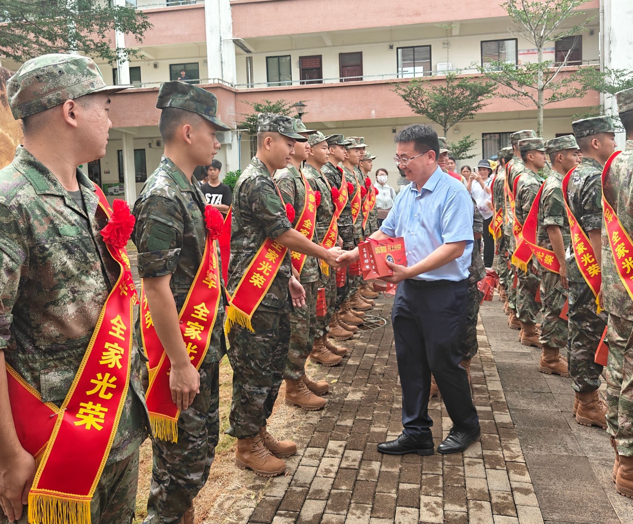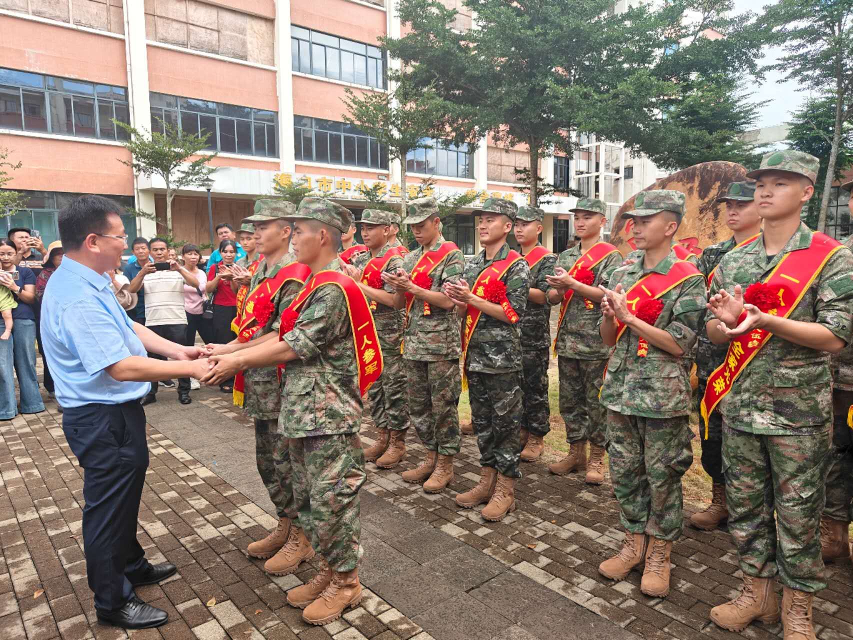 2025年9月18日,betway西汉姆联官网党委副书记、校长崔昌华出席海口市美兰区入伍大学生欢送仪式,为31名海经贸参军入伍学子送行。