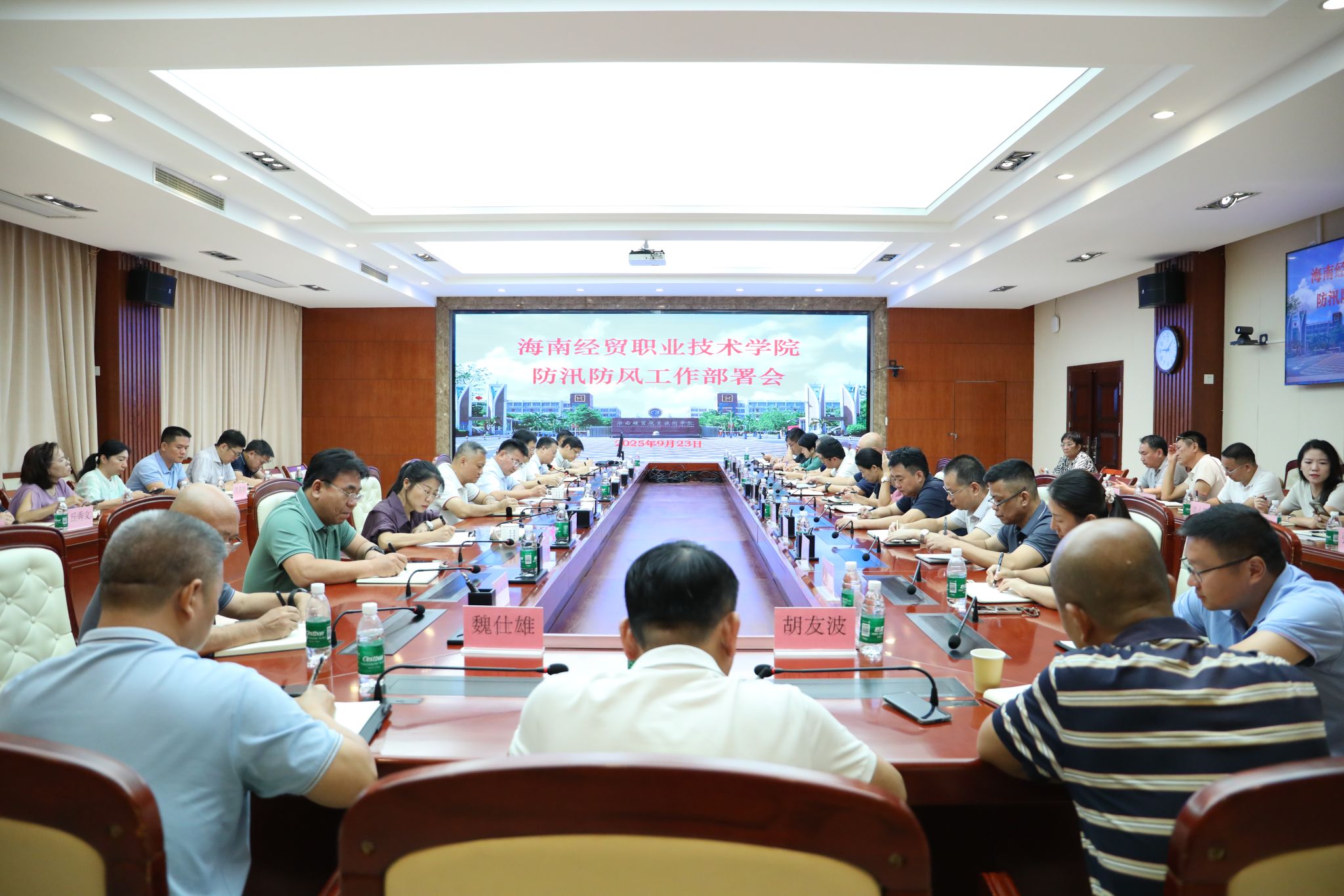 2025年9月23日,betway西汉姆联官网召开防风防汛工作部署会,研判超强台风“桦加沙”校园灾害风险,部署防御应对工作。学校党委副书记、校长崔昌华,党委委员和校领导陈修焕、符史杭、李厚永、杨娜、田小林出席会议。
