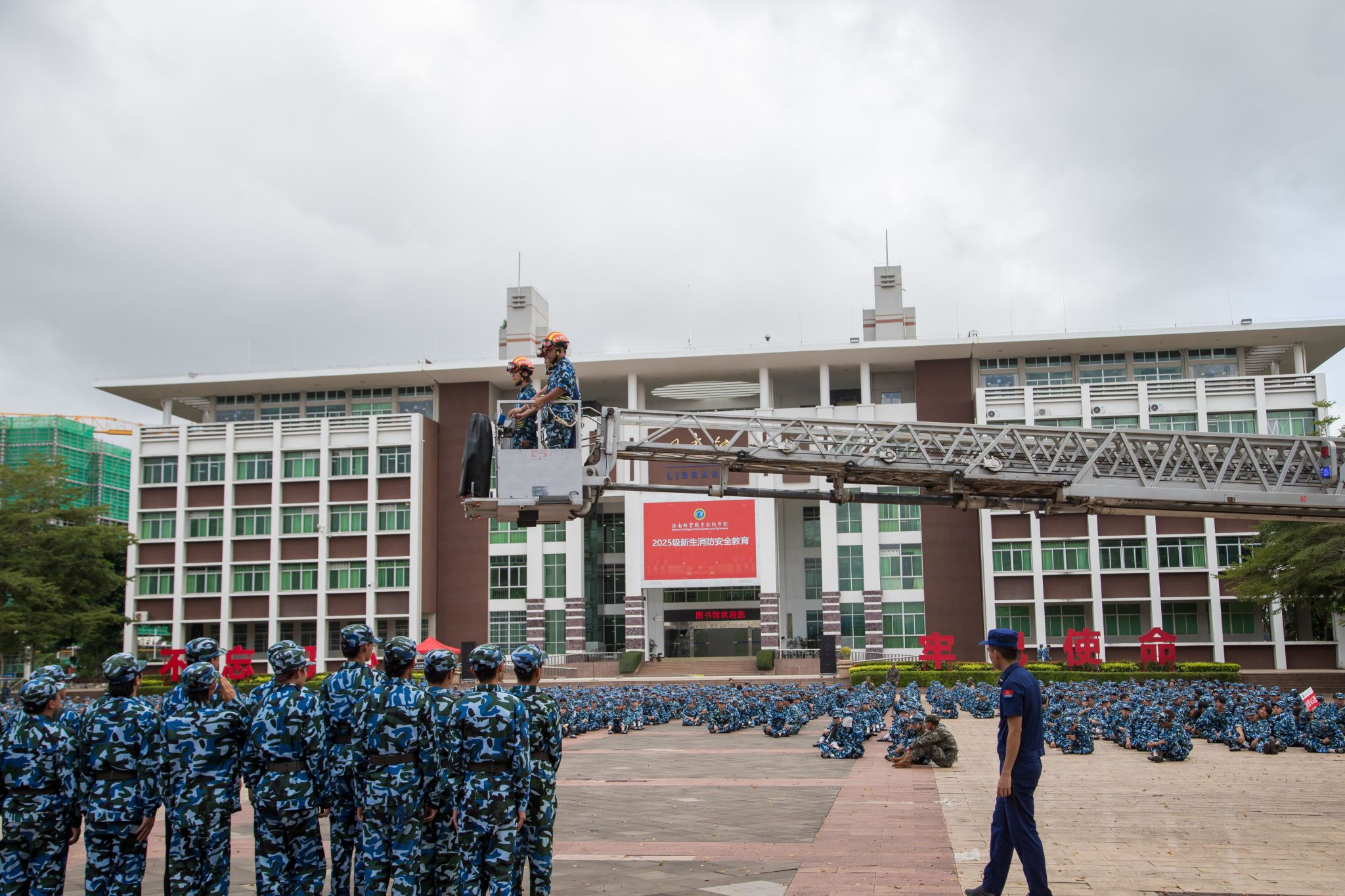 2025年9月27日,海口市桂林洋消防应急救援站走进betway西汉姆联官网,应邀为新生开展消防安全教育第一课,通过“教育+演练”的沉浸式安全教育模式,帮助新生掌握灭火与逃生技能,让同学们在实践中将安全知识转化为“肌肉记忆”。全体2025级新生参加培训。