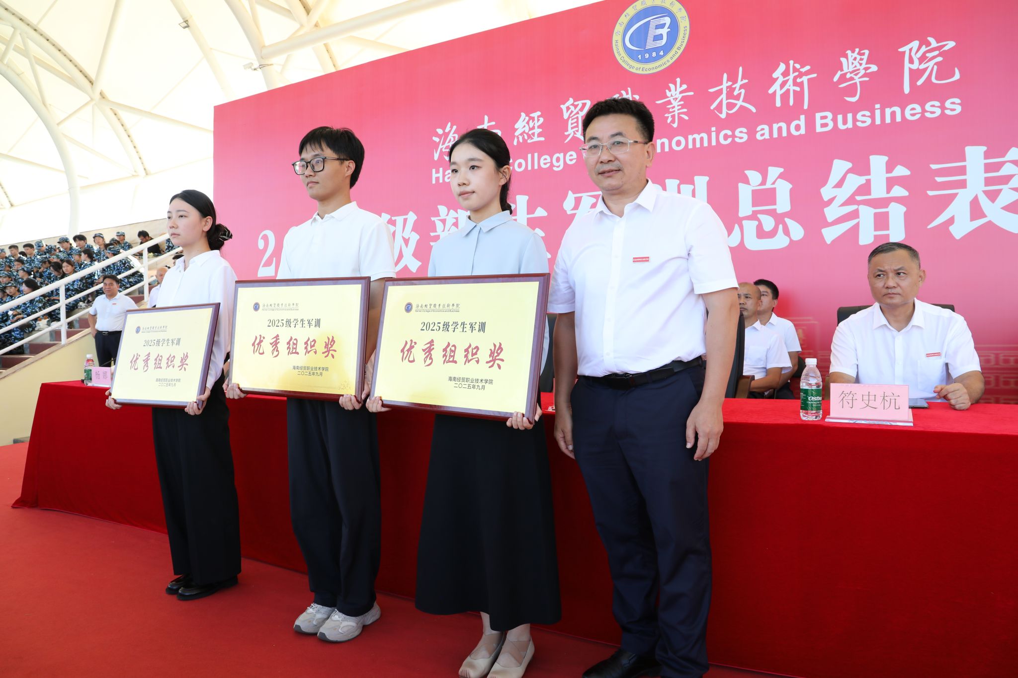 他深情寄语同学们,要传承“听党指挥”的军魂,筑牢理想信念的“根”与“魂”。将青春抱负融入服务国家战略、助力自贸港建设的时代洪流,做一名有理想、有担当、有格局的海经贸人。要发扬“能打胜仗”的作风,锤炼过硬本领的“技”与“能”。既要坐得住“冷板凳”,夯实理论基础,又要进得了“实训室”,练就过硬实操本领,努力成为知识结构优、实践能力好、创新意识强的高端技术技能人才。要永葆“作风优良”的传统,涵养团结协作的“和”与“美”。在服务社会中增长才干,努力成为人格健全、身心健康、全面发展的时代新人,用军训赋予自己的宝贵精神财富书写精彩人生华章。