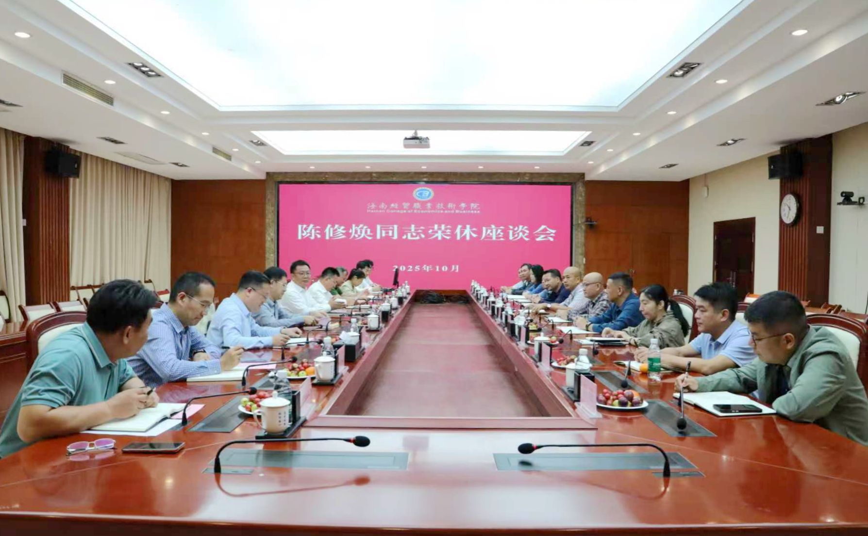 温情满溢的座谈会在不舍与祝福中落下帷幕。陈修焕同志用十年的坚守与奉献,为海经贸的发展奠定了坚实基础,也为海经贸全体教职工留下了宝贵的精神财富。全体海经贸人将凝心聚力、接续奋斗,在办学的道路上不断探索突破,持续推进学校高质量发展。