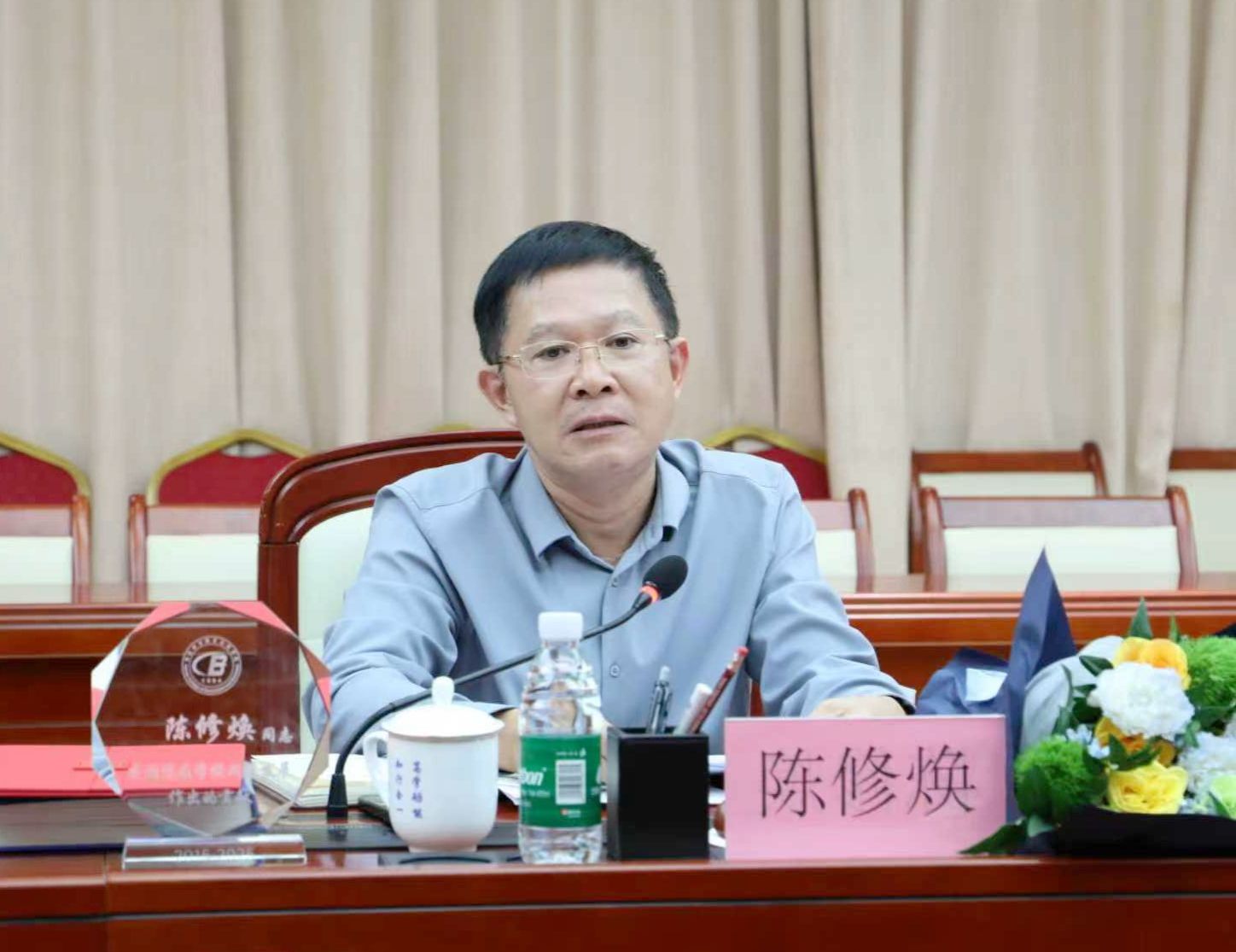 在交流发言中,与会同志们深情回忆与陈修焕同志共事的难忘岁月并致以真诚祝愿。大家敞开心扉、纷纷细数过往,畅谈工作上他对各部门各单位的悉心点拨和精准指导,日常生活场景中他给予的温暖关怀与坚定支持,人格品行上他恪尽职守、严谨细致、热忱待人的优秀品质和讲政治顾大局、守规矩严纪律的优良作风。大家纷纷表示,陈修焕同志早已成为大家心中的工作榜样,这份“功成不必在我”的精神境界和“功成必定有我”的责任担当值得每一位海经贸干部职工学习。