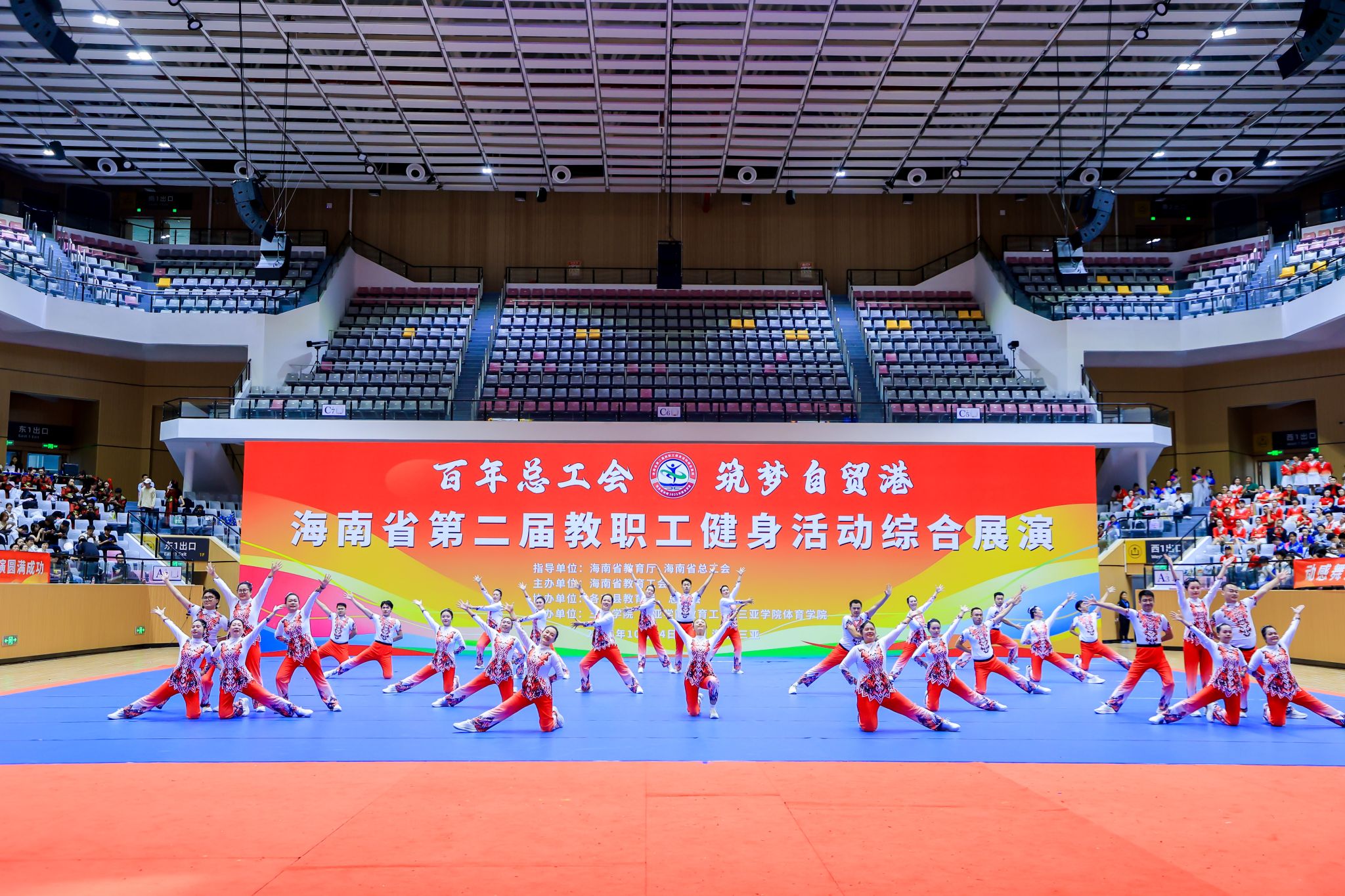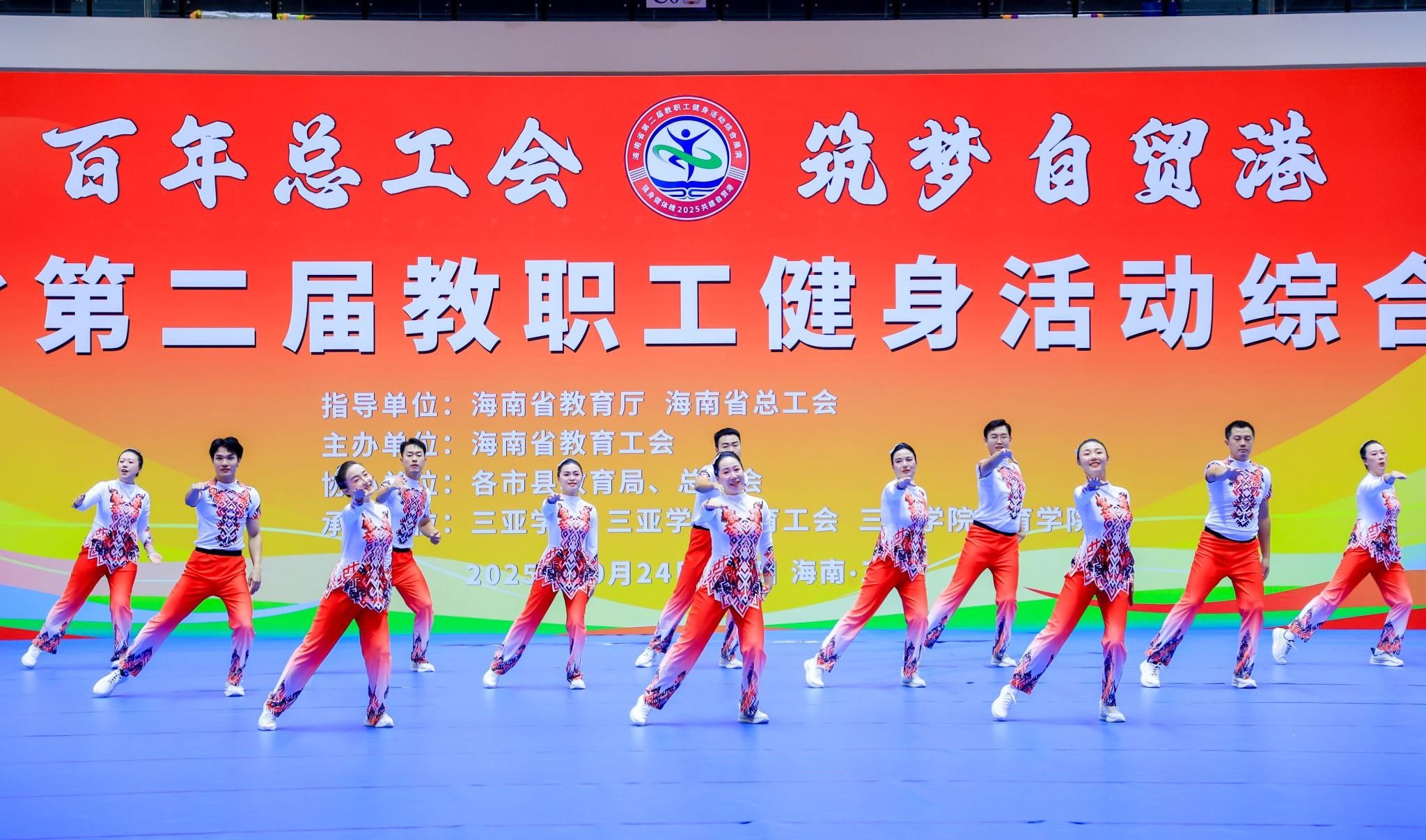 本届比赛由海南省教育厅、海南省总工会指导,海南省教育工会主办,各市县教育局、海南省总工会协办,三亚学院、三亚学院教育工会、三亚学院体育学院承办。赛事共设高校组、市县组、厅直属和省属学校组3个参赛组别,现场共有45支参赛队伍、近1300名教职工参与。
