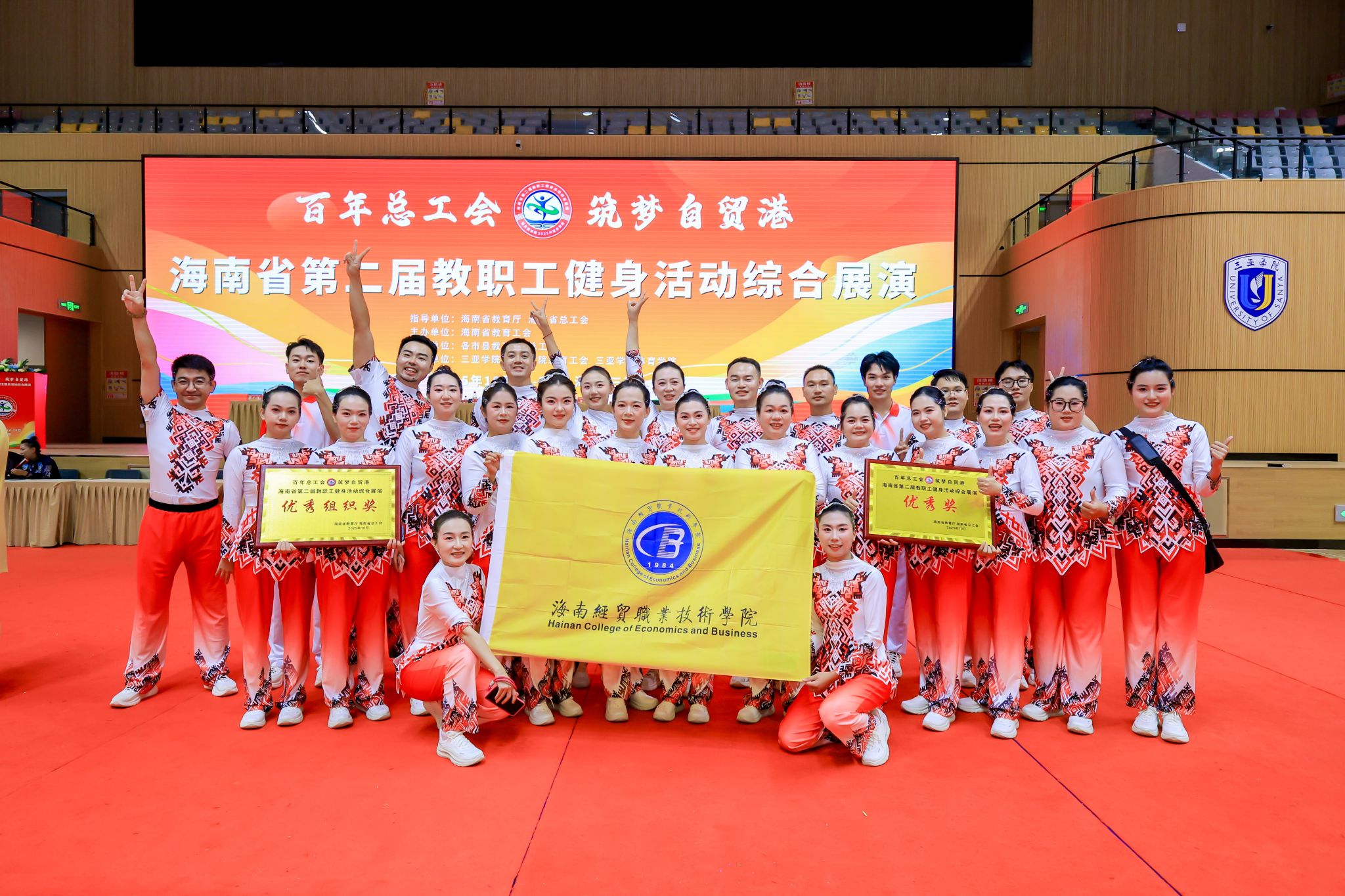 近日,由海南省教育厅、海南省总工会举办的“百年总工会 筑梦自贸港”海南省第二届教职工健身活动综合展演在三亚开展高校组竞演。betway西汉姆联官网组织30名教职工参赛,荣获优秀奖和优秀组织奖。