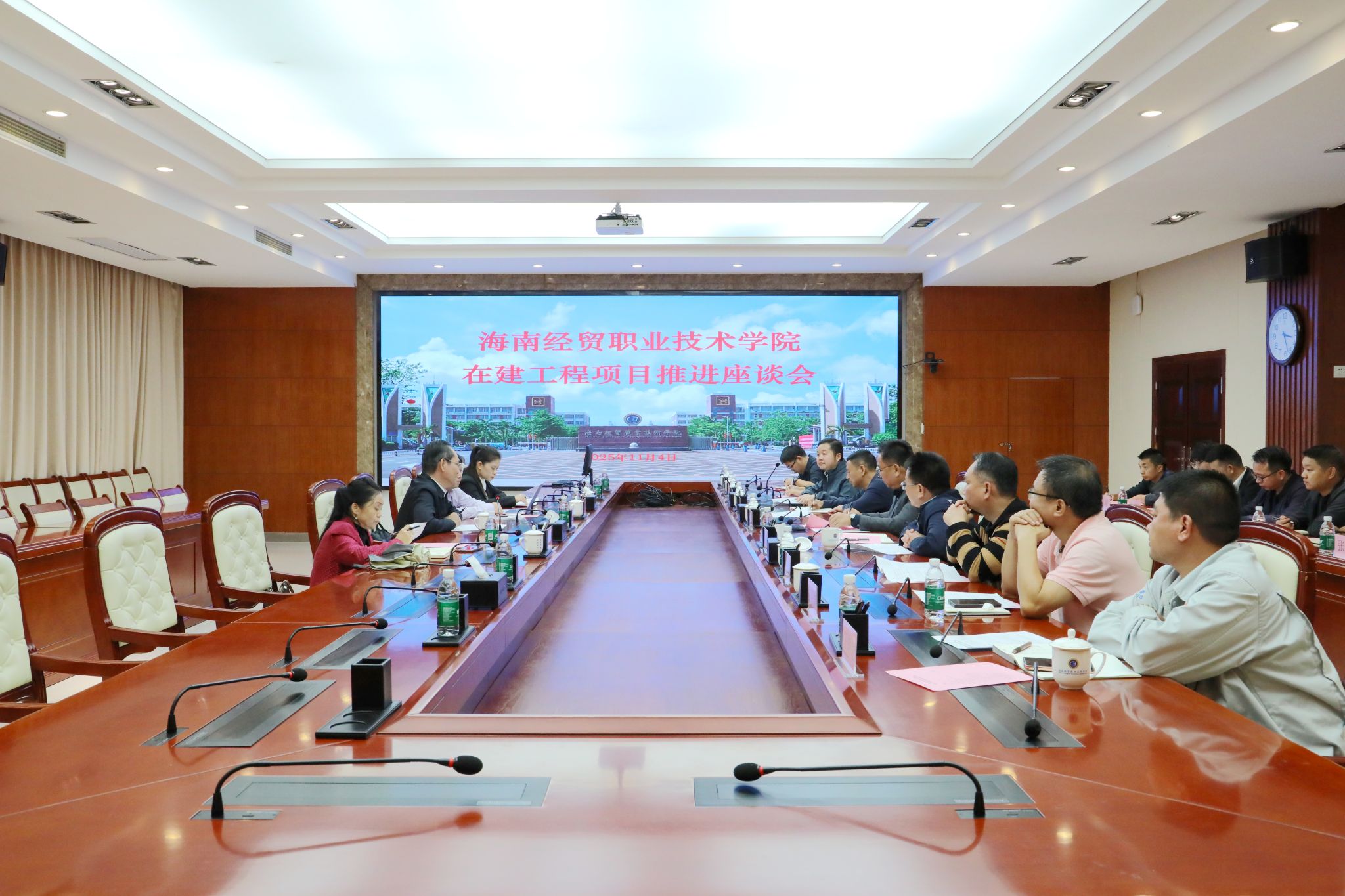 2025年11月4日,海南省教育厅党组成员、副厅长邢孔政一行4人来到betway西汉姆联官网,就在建工程项目推进情况进行调研。学校党委书记王华,党委副书记、校长崔昌华出席座谈会。