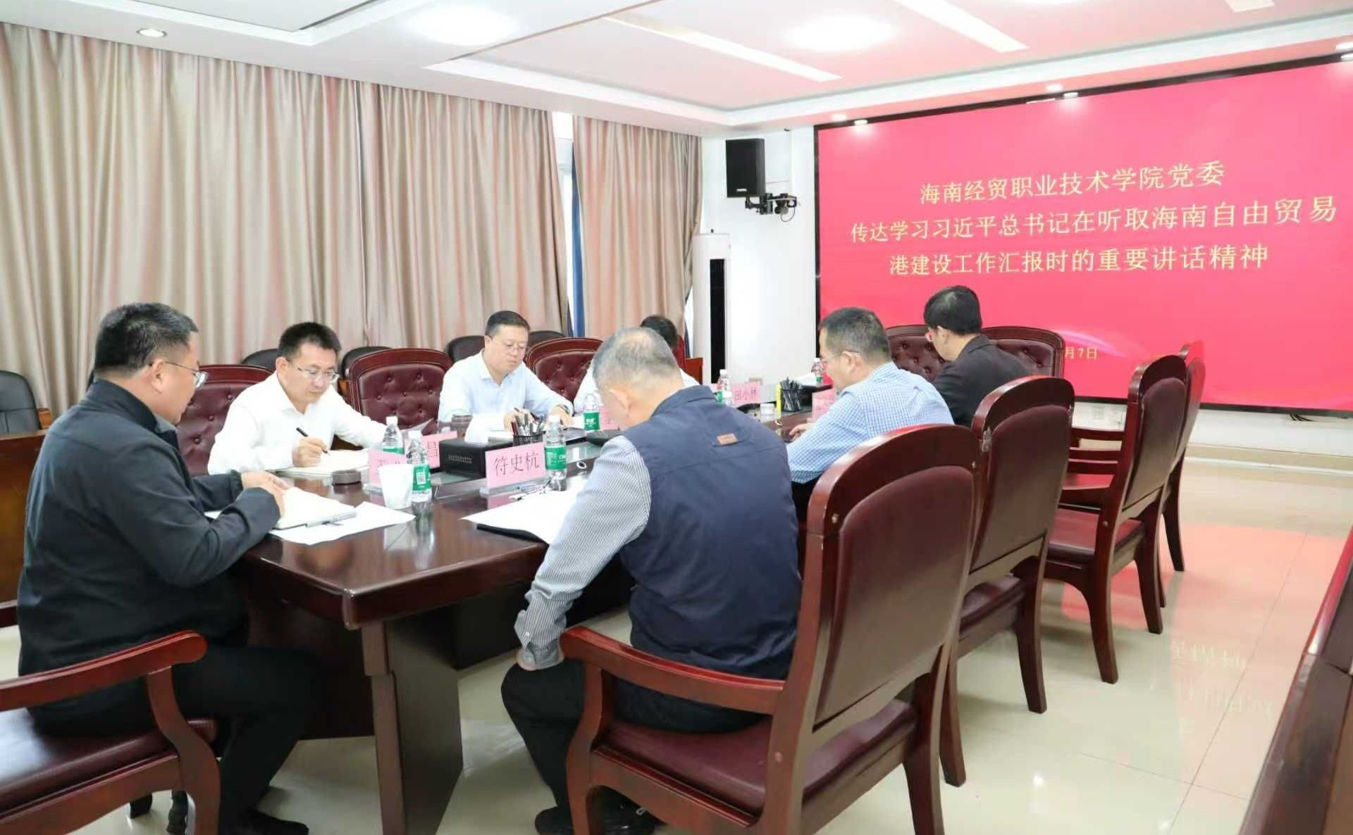 会议强调,在全省上下深入学习贯彻党的二十届四中全会精神、全力推进封关运作准备工作的关键时期,习近平总书记再次亲临海南,听取海南自由贸易港建设工作汇报并发表重要讲话,充分体现了对海南自由贸易港建设的高度重视、亲切关怀,为海南自由贸易港建设提供了最新指引和根本遵循,令人深受鼓舞、倍感振奋。全校上下要认真学习贯彻习近平总书记重要讲话精神,深刻领悟习近平总书记重要讲话精神的重大意义,切实将思想和行动统一到党中央重大决策部署上来,落实省委工作要求,牢牢把握正确发展方向,主动担当作为,确保学校各项工作有序推进,在服务海南自由贸易港建设中积极贡献海经贸力量。