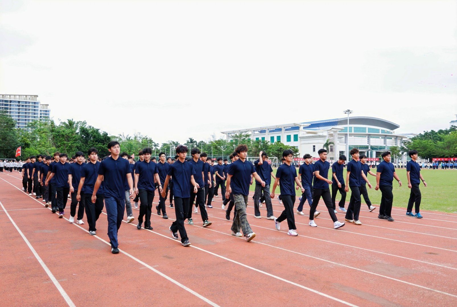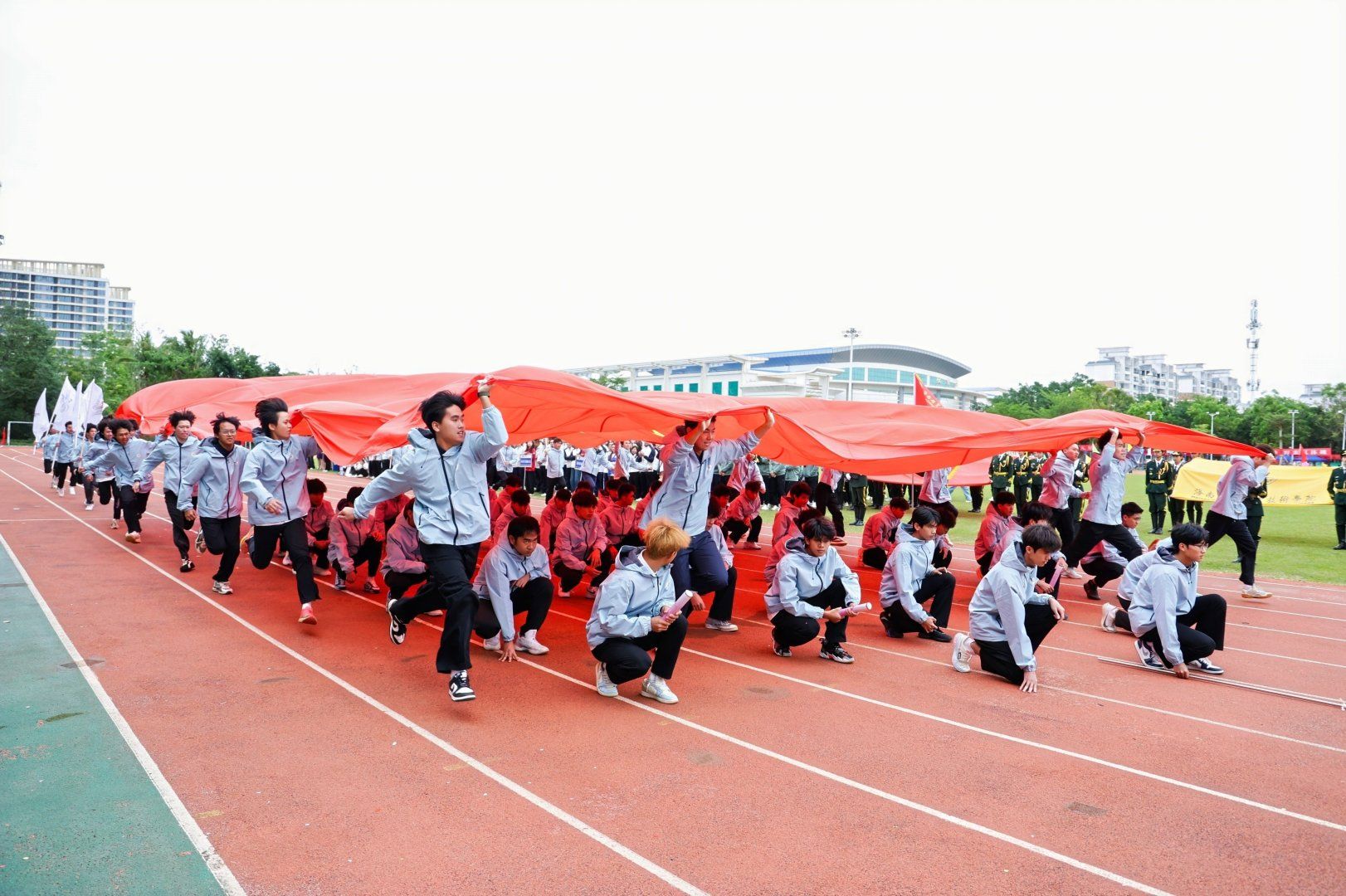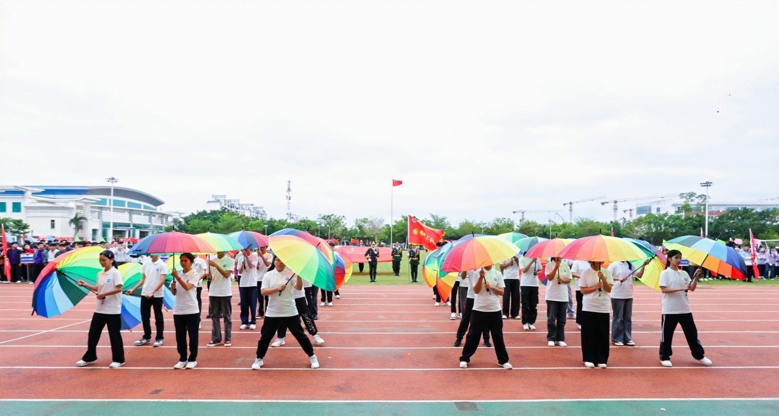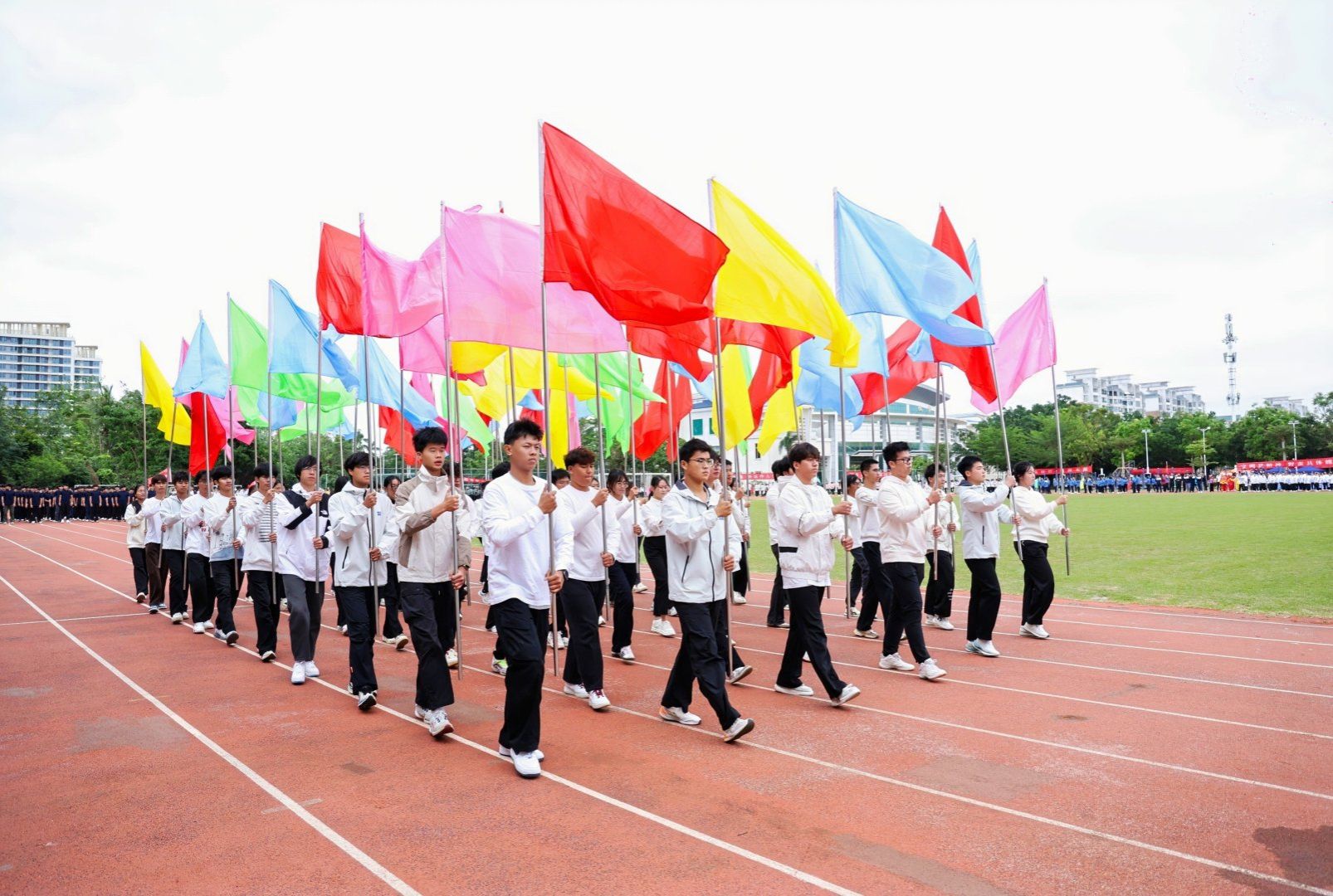 《运动员进行曲》奏响激昂节拍,国旗护卫队、校旗护卫队、彩旗方队、裁判员方队、教职工方队及各二级学院学生运动员方队身着统一服装,意气风发,迈入赛场。整齐的步伐踏响奋进节奏,嘹亮的口号传递青春力量,昂扬的斗志尽显青春担当,展现出海经贸师生奋发向上的昂扬姿态。