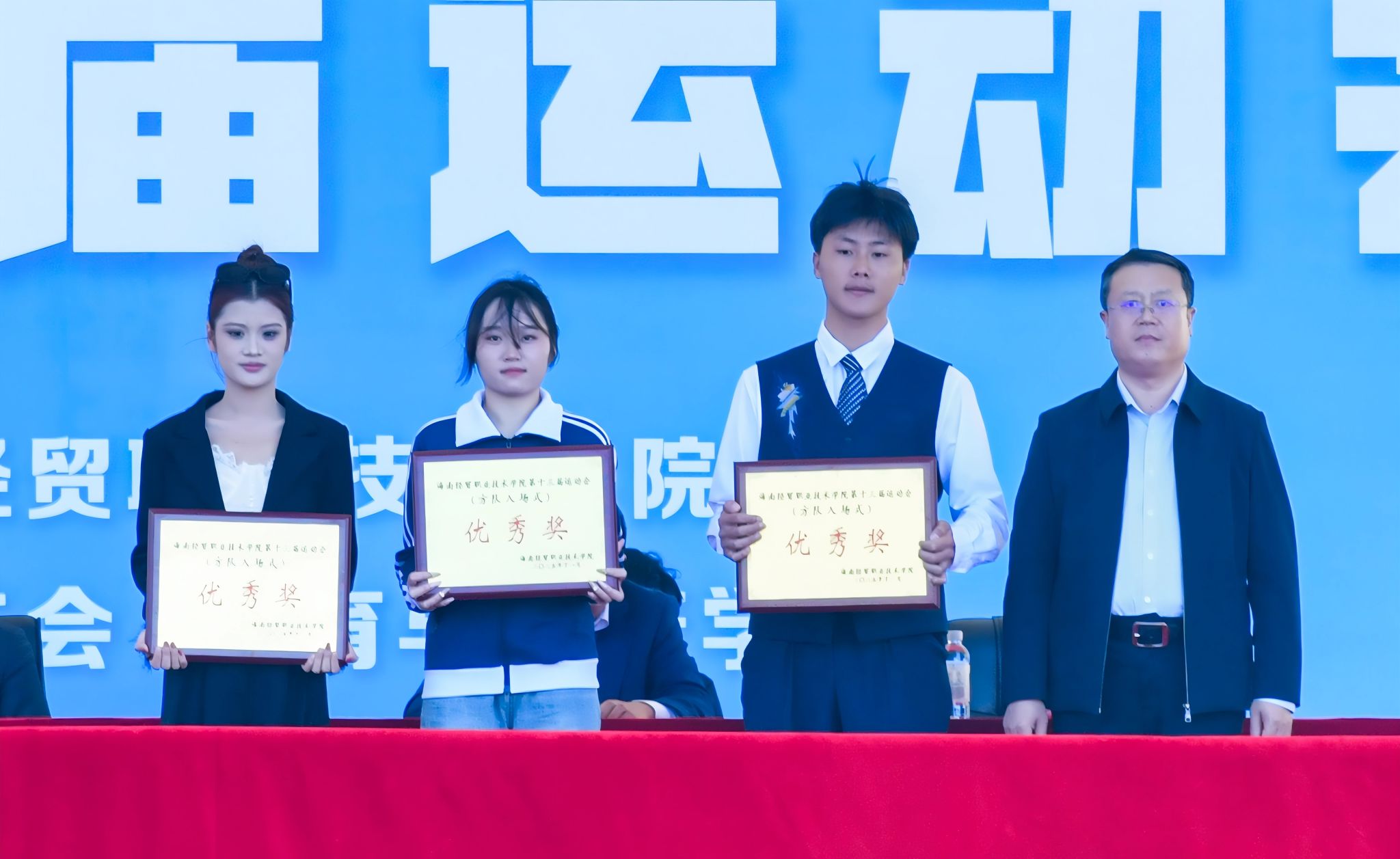 闭幕式上,学校表彰了本届运动会获奖团体和个人。机关第二分工会、国际贸易学院分工会、国际旅游学院分工会、机关第一分工会、机电与汽车工程学院分工会、体育与健康学院分工会分别获得教职工团体总分第一至第六名。体育与健康学院、国际旅游学院、国际贸易学院、财务管理学院分别荣获学生团体总分第一至第四名。国际旅游学院、国际贸易学院、信息技术学院获得体育道德风尚奖;人文艺术学院、财务管理学院、国际旅游学院获得入场式优秀奖;财务管理学院、信息技术学院、外国语学院获得啦啦操表演奖一、二、三等奖;尹桢、符发顺等30人获得“优秀裁判员”称号;王康权等18人获得“优秀运动员”称号。