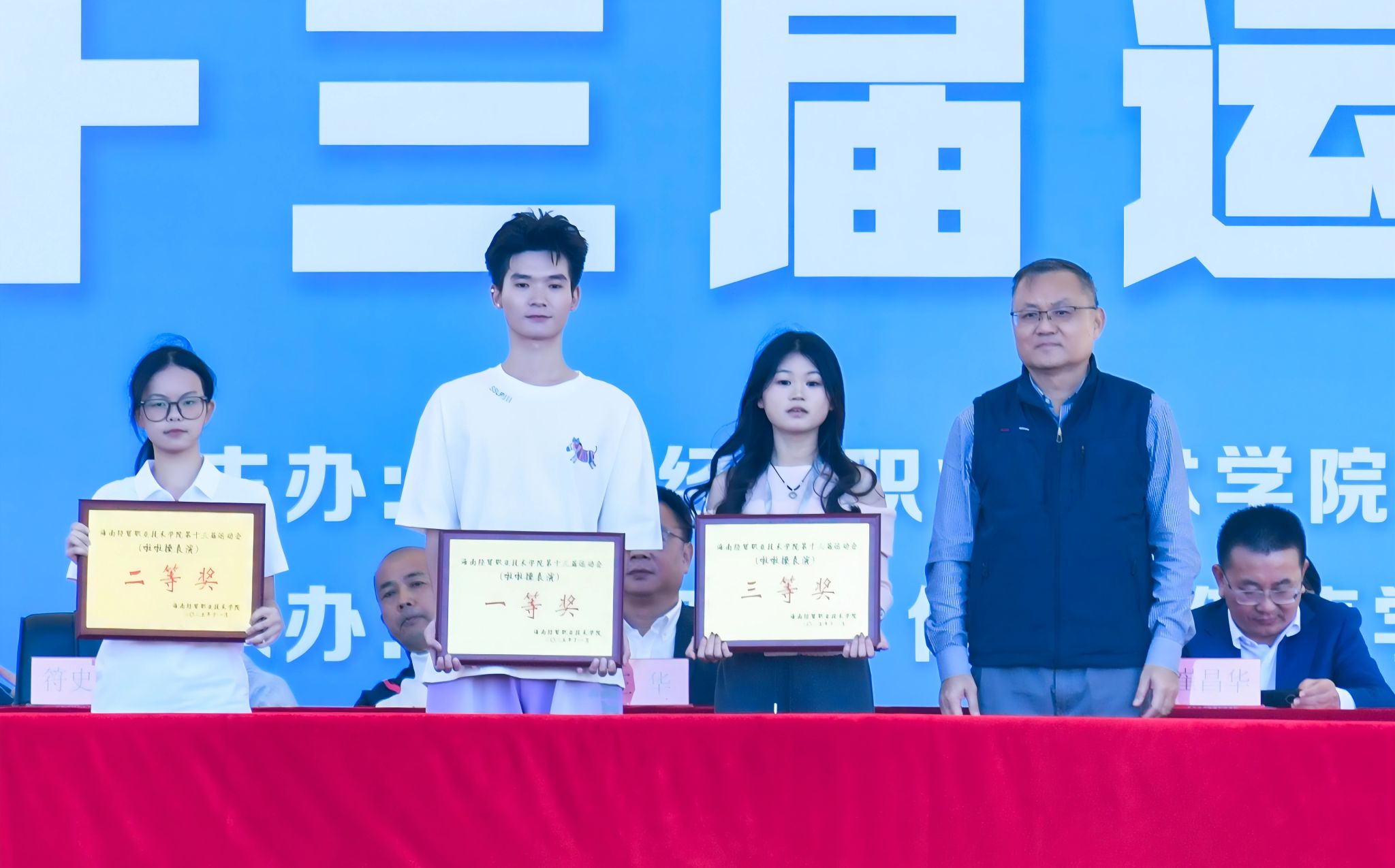 王华代表学校党委向所有在赛场上挑战自我、为集体争光的运动员们表示热烈祝贺,向公正执裁的裁判员、奔波忙碌的工作人员和默默奉献的志愿者们表示诚挚感谢。他说,冲刺时的全力以赴、协作时的默契信任、喝彩时的真诚热烈都在赛场上凝结成海经贸师生最鲜明的精神印记。他深情勉励全校师生,一是希望同学们把赛场上的这股“拼劲儿”带到学习和课堂中,把“不服输、争一流”的劲头,变成攻克难题、钻研技能的动力;老师们把拼搏向上、公平竞争的精神融入日常育人,培养专业过硬、品格优良的高技能人才。二是把运动中养成的“健康习惯”坚持下去,提高对健康的重视,养成自律的习惯,让健康体魄和阳光心态成为每一个海经贸人的核心竞争力。三是把赛场上的“团结协作”精神,凝聚成学校发展的强大合力,于学校发展的“关键大考”之际,亮出过硬教风、扎实学风、昂扬校风,不负众望所托,全力冲刺、圆满收官。