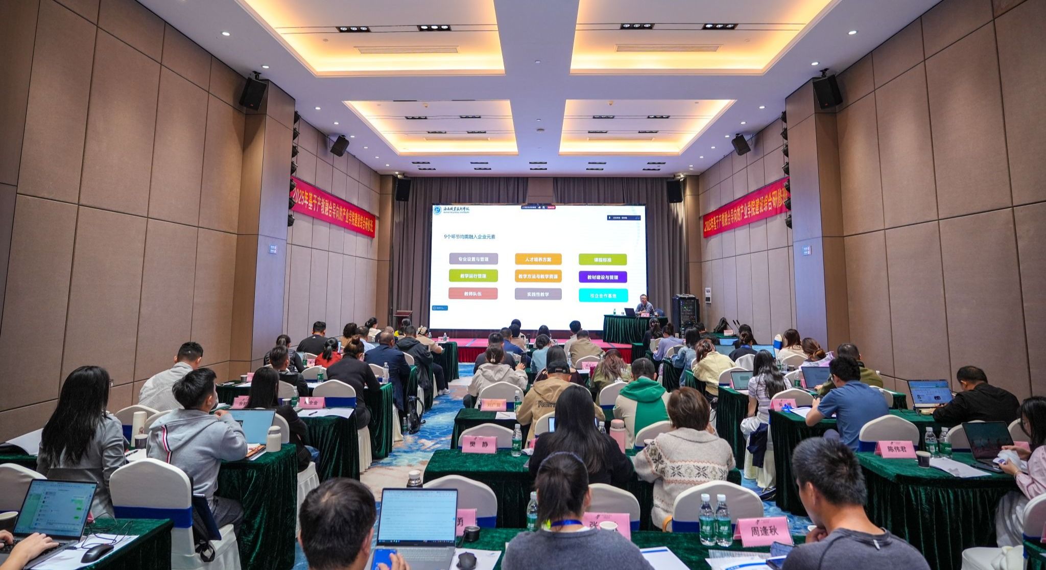 2025年11月19日至23日,由省教育厅主办、betway西汉姆联官网与省职业教育师资培训中心联合承办的“基于产教融合导向的产业学院建设综合研修班”在澄迈顺利举行。来自全省18所高职院校的400余名教师参加培训。