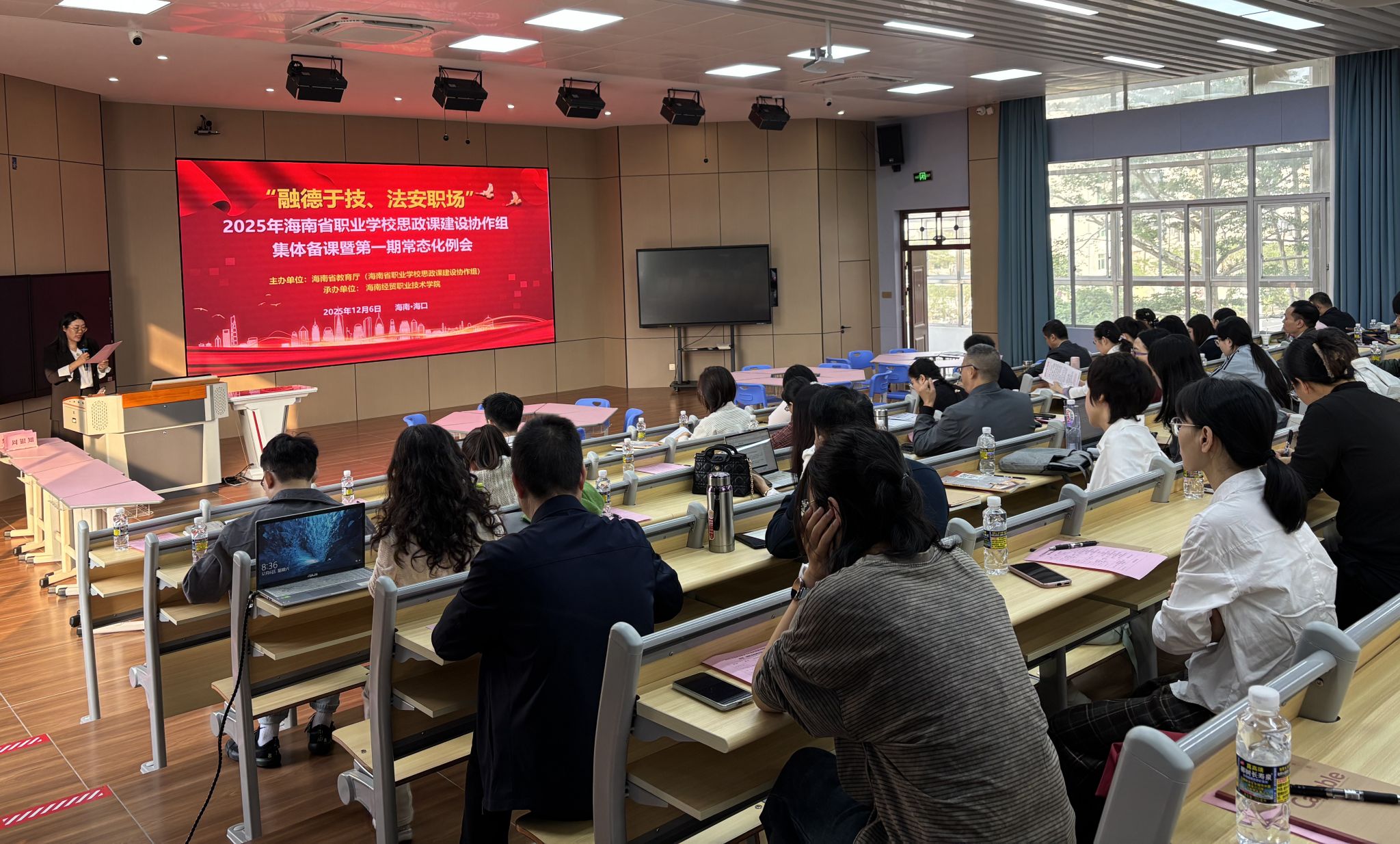 近日,2025年海南省职业学校思政课建设协作组“融德于技、法安职场”集体备课会及教学交流活动在betway西汉姆联官网举办,全省20多所职业院校的思政课骨干教师、教学负责人及专家学者参加。