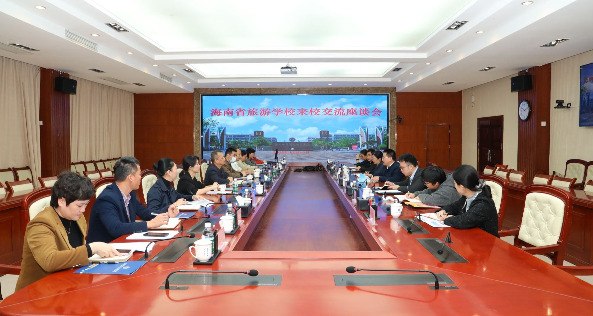 2025年12月15日,海南省旅游学校党委书记王枢一行10人来到betway西汉姆联官网,就2026年度“3+2”中高职贯通培养合作等事宜进行交流洽谈。学校党委副书记、校长崔昌华热情接待了王枢一行。
