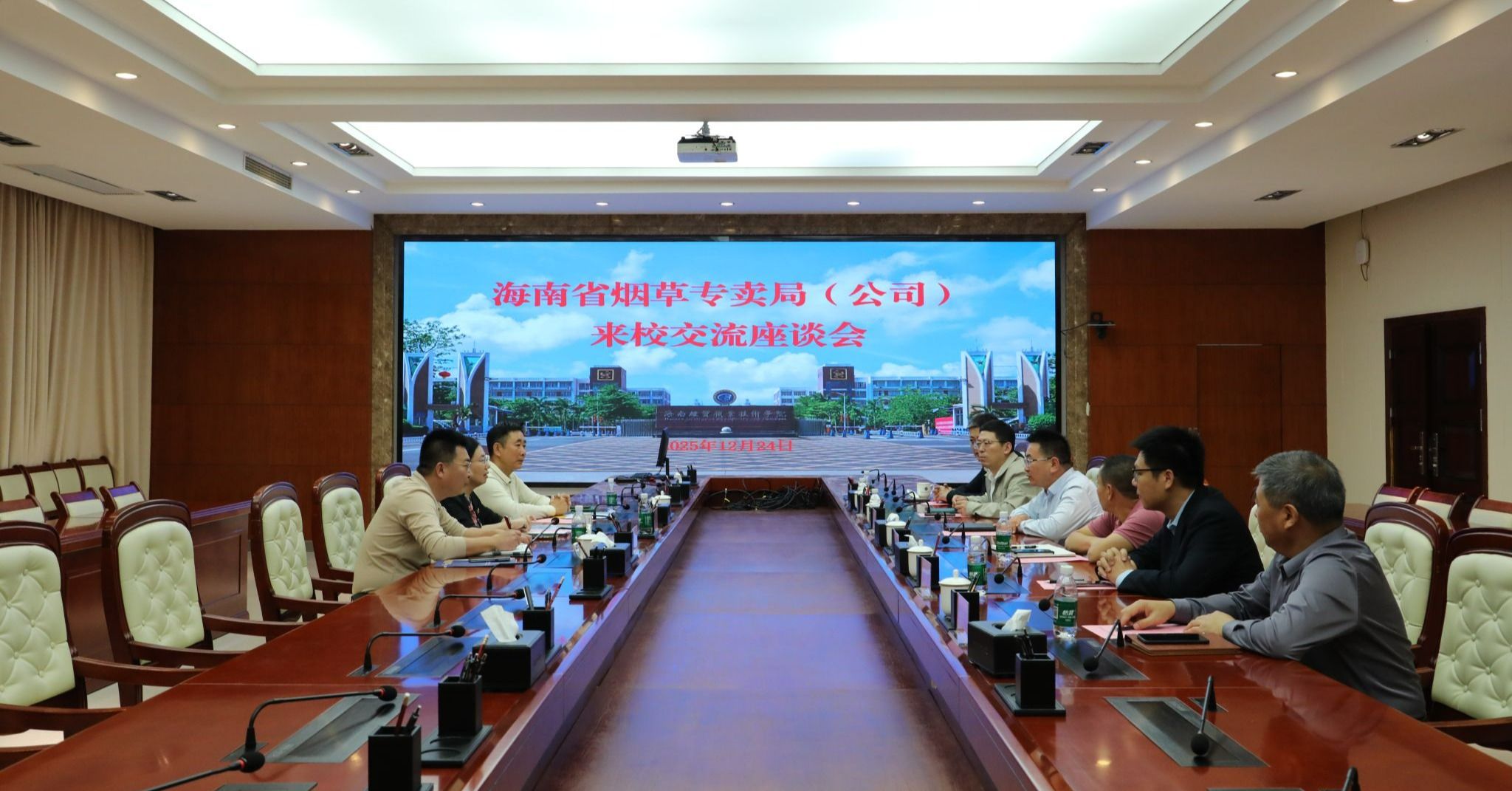 2025年12月24日,海南省烟草专卖局营销中心主任陈敏一行3人来到betway西汉姆联官网,交流校企合作事宜。学校党委副书记、校长崔昌华出席座谈会。