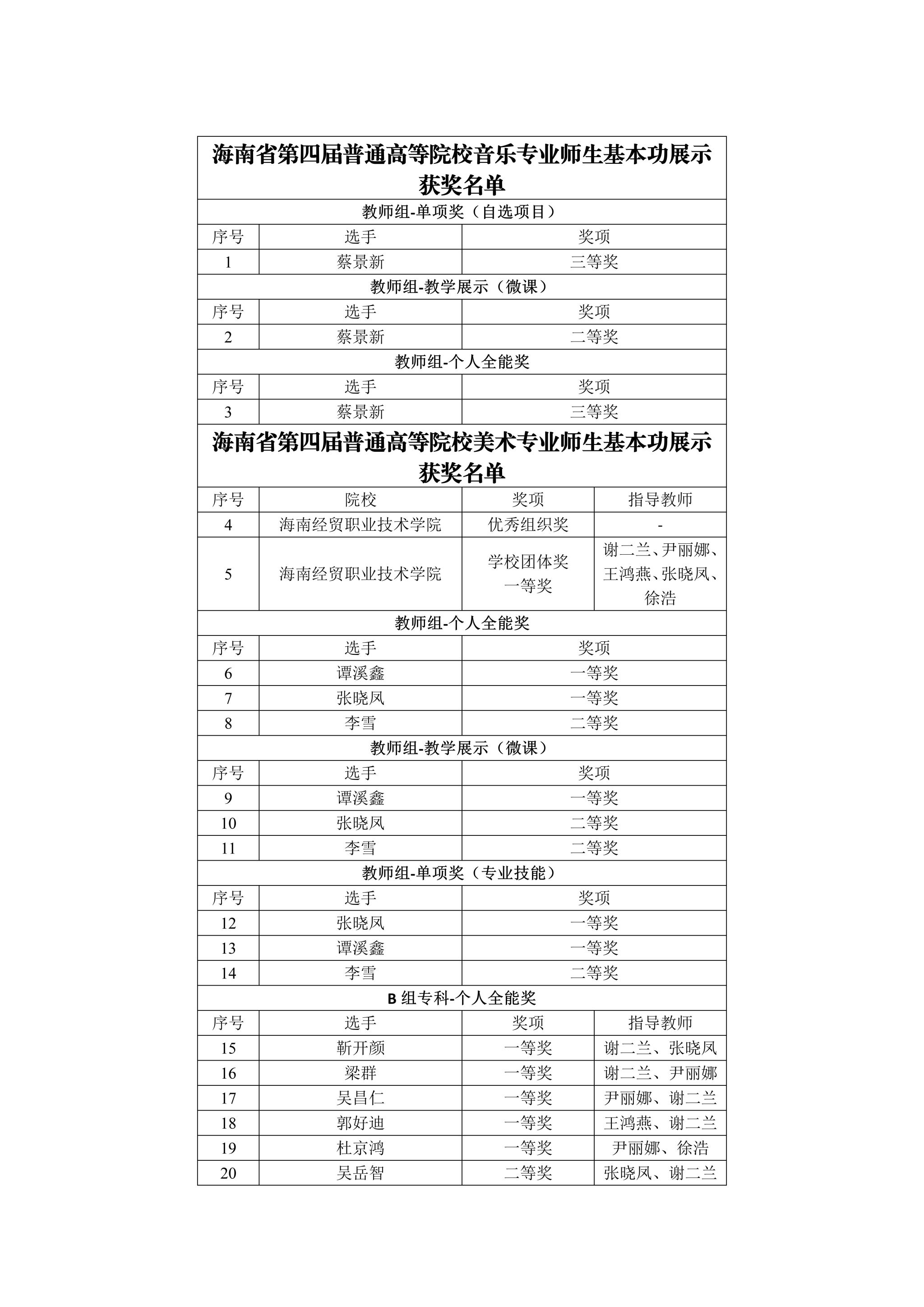 海南省普通高等院校音乐、美术师生基本功展示作为全省高校艺术教育领域的重要赛事,是检验高校相关专业教学质量与师生专业水平的重要平台。海经贸师生在这场汇聚全省高校艺术精英的激烈角逐中满载而归,获奖数量和质量大幅提升,是学校长期以来高度重视学科专业建设、大力推进教学改革、精心培育师生能力的丰硕成果。
