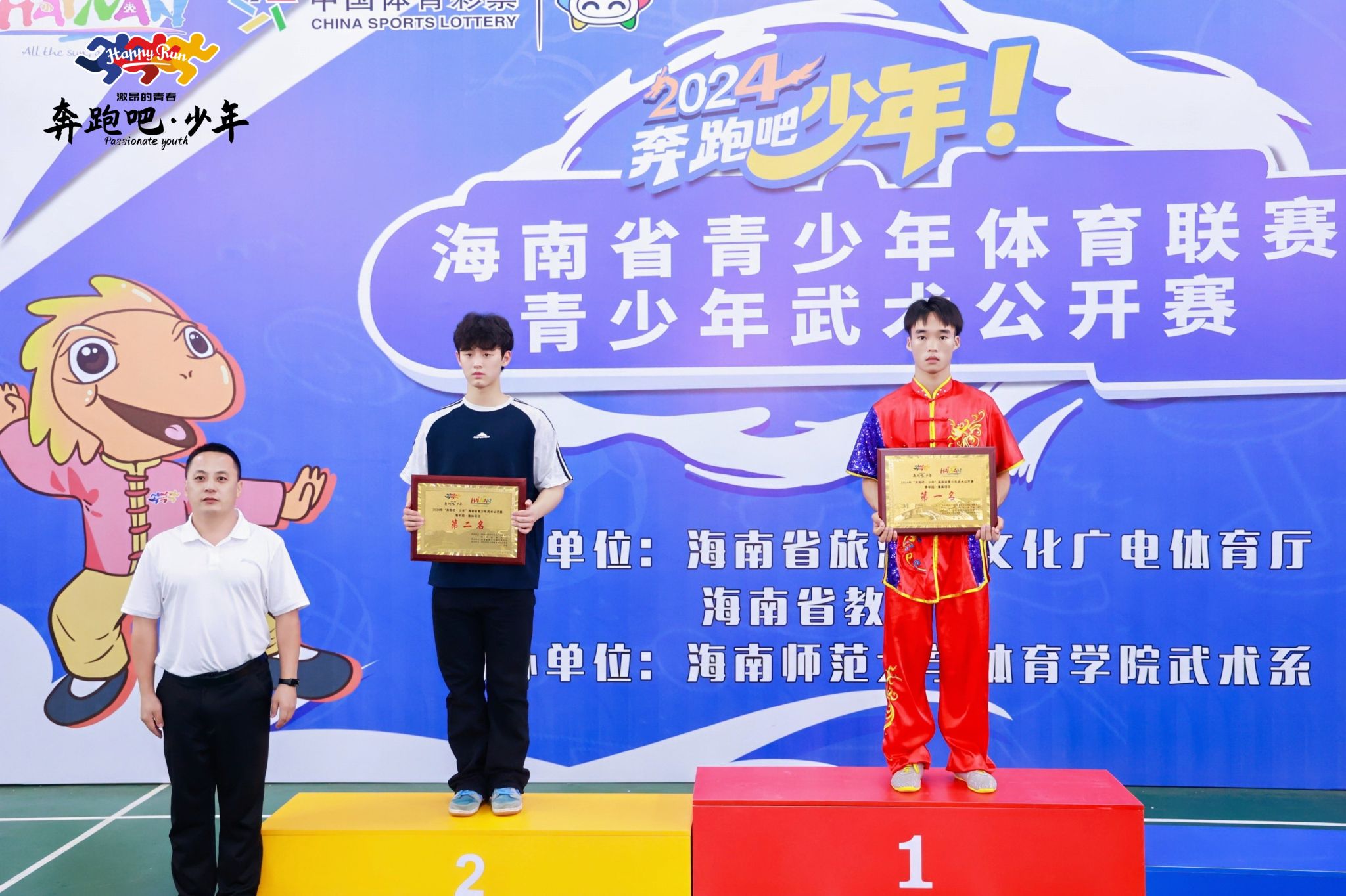 2024年“奔跑吧·少年”海南省青少年武术公开赛由海南省旅游和文化广电体育厅、海南省教育厅主办,海南师范大学体育学院武术系协办。赛场上,海经贸参赛选手眼神坚定,动作流畅有力,招式精准到位,力量恰到好处,获得了评委和观众的一致好评。荣誉的背后是同学们夜以继日的努力,他们严格要求自己,不断提升武术技巧,精心调整力度速度,每一次的练习,每一次的汗水,都是为了在赛场上展现出最好的自己。