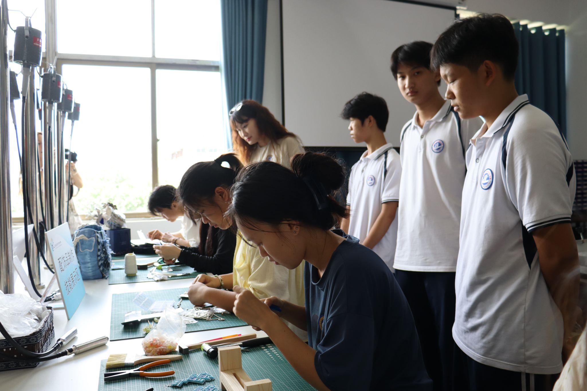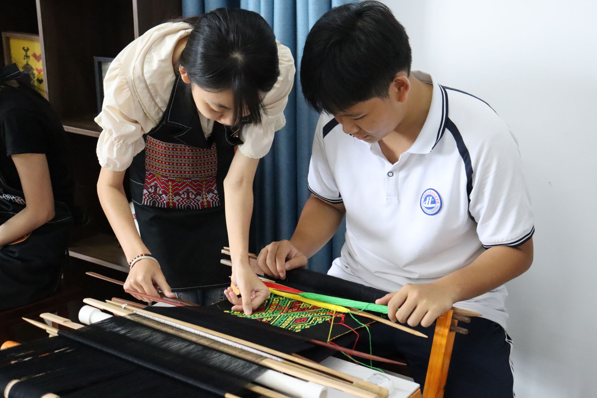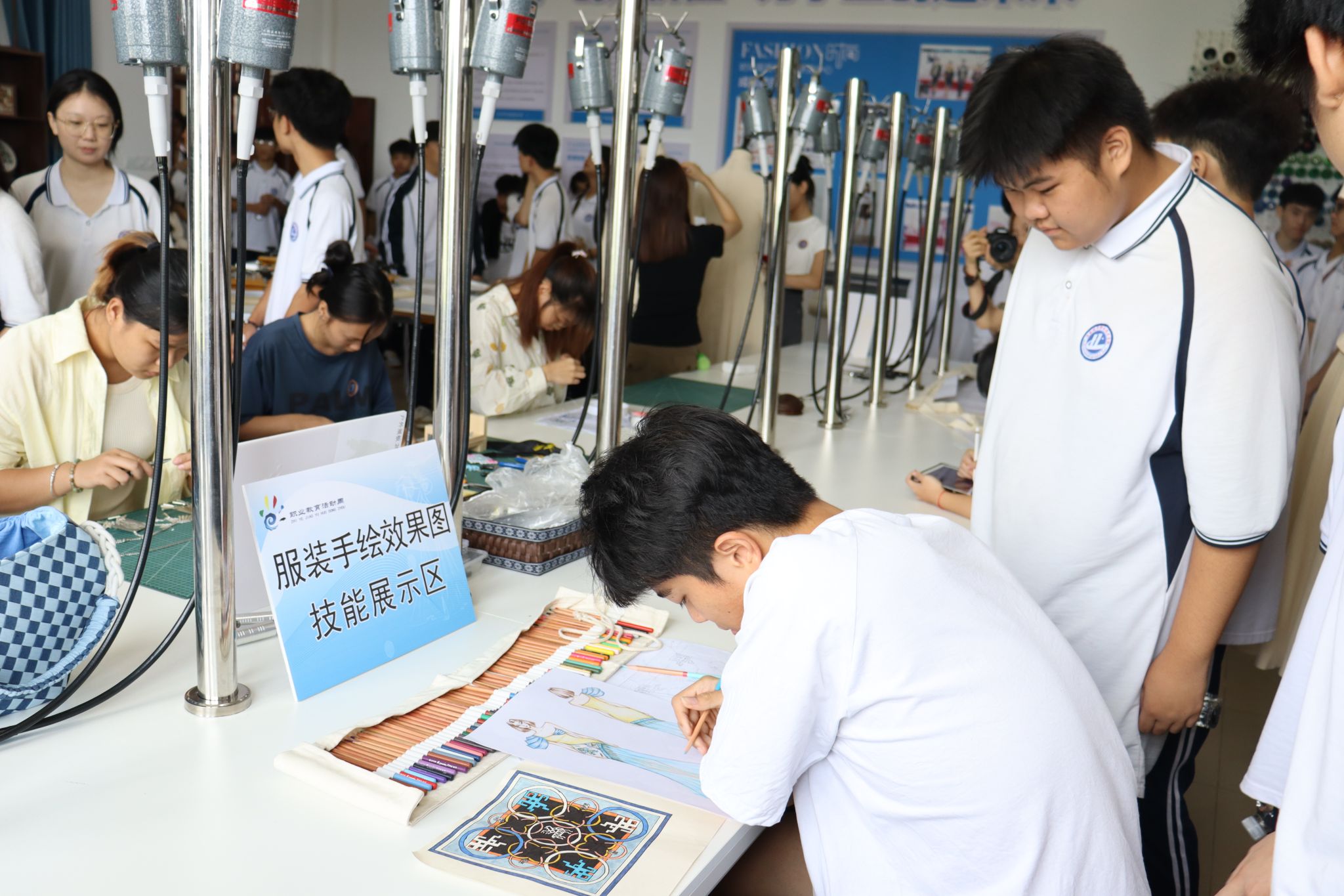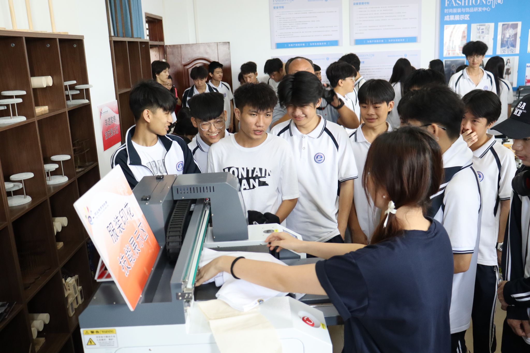 “这位姐姐为大家展示的是黎族织锦。那位小哥哥正在进行服装建模设计……”海南城市职业技术学校的同学们来到人文艺术学院,学长学姐们正在这里展示他们的“拿手绝活”。同学们在服装印花技能展示区、非遗黎锦技艺展示区、服装陈列设计技能展示区等展位观看了海经贸学子的优秀作品并积极参与互动,真切感悟到了服装与服饰设计专业的魅力。