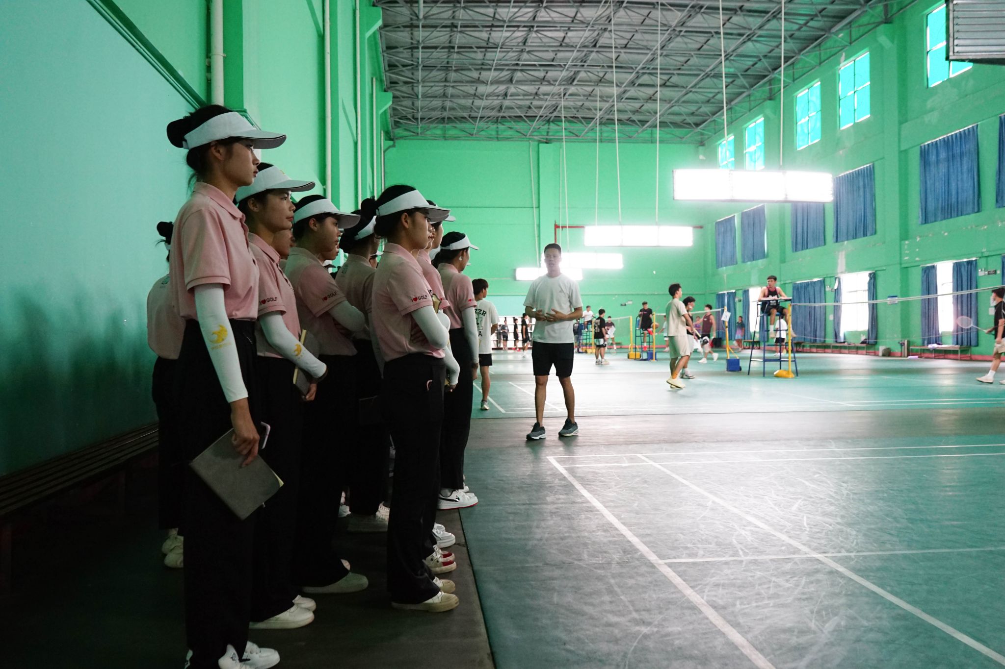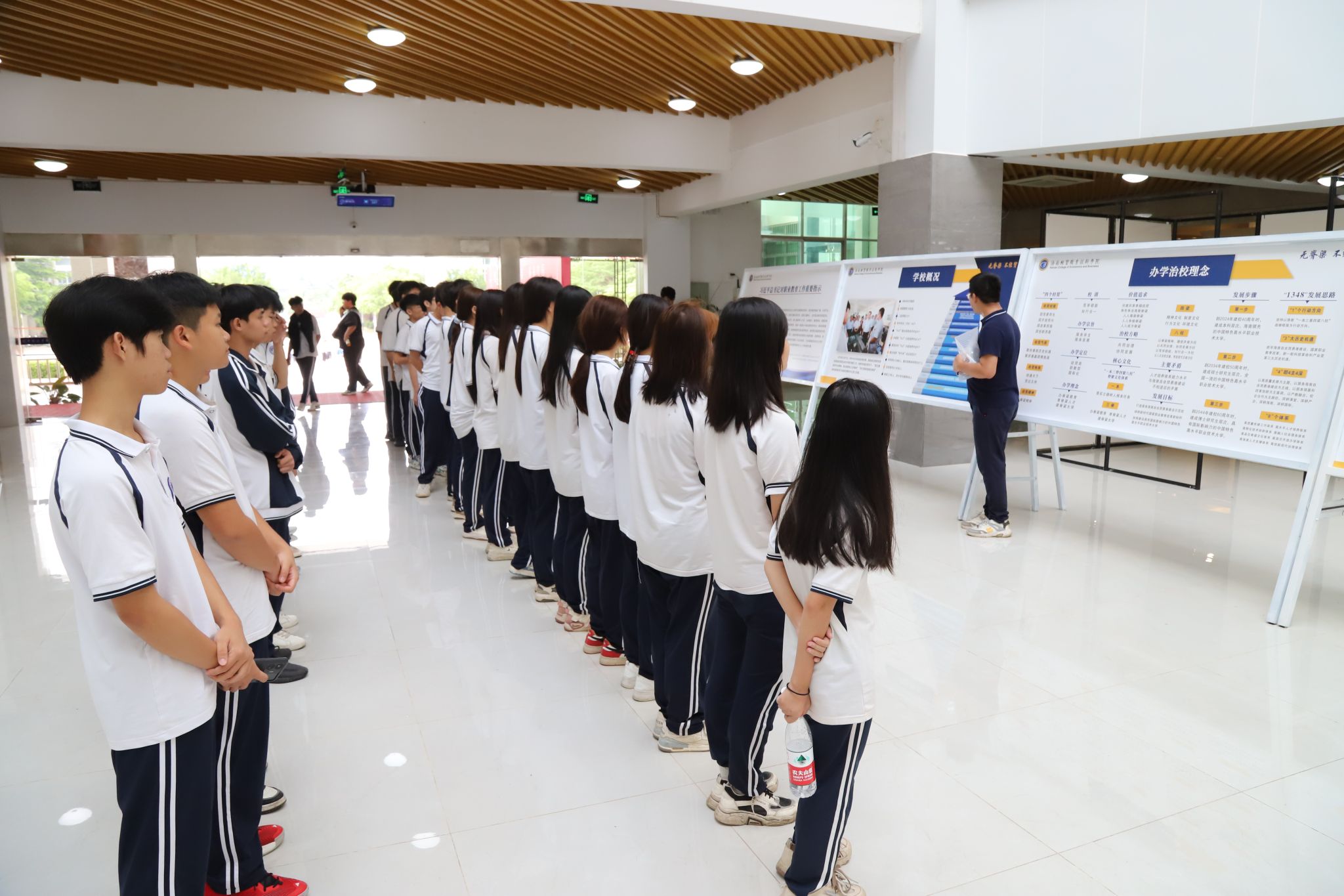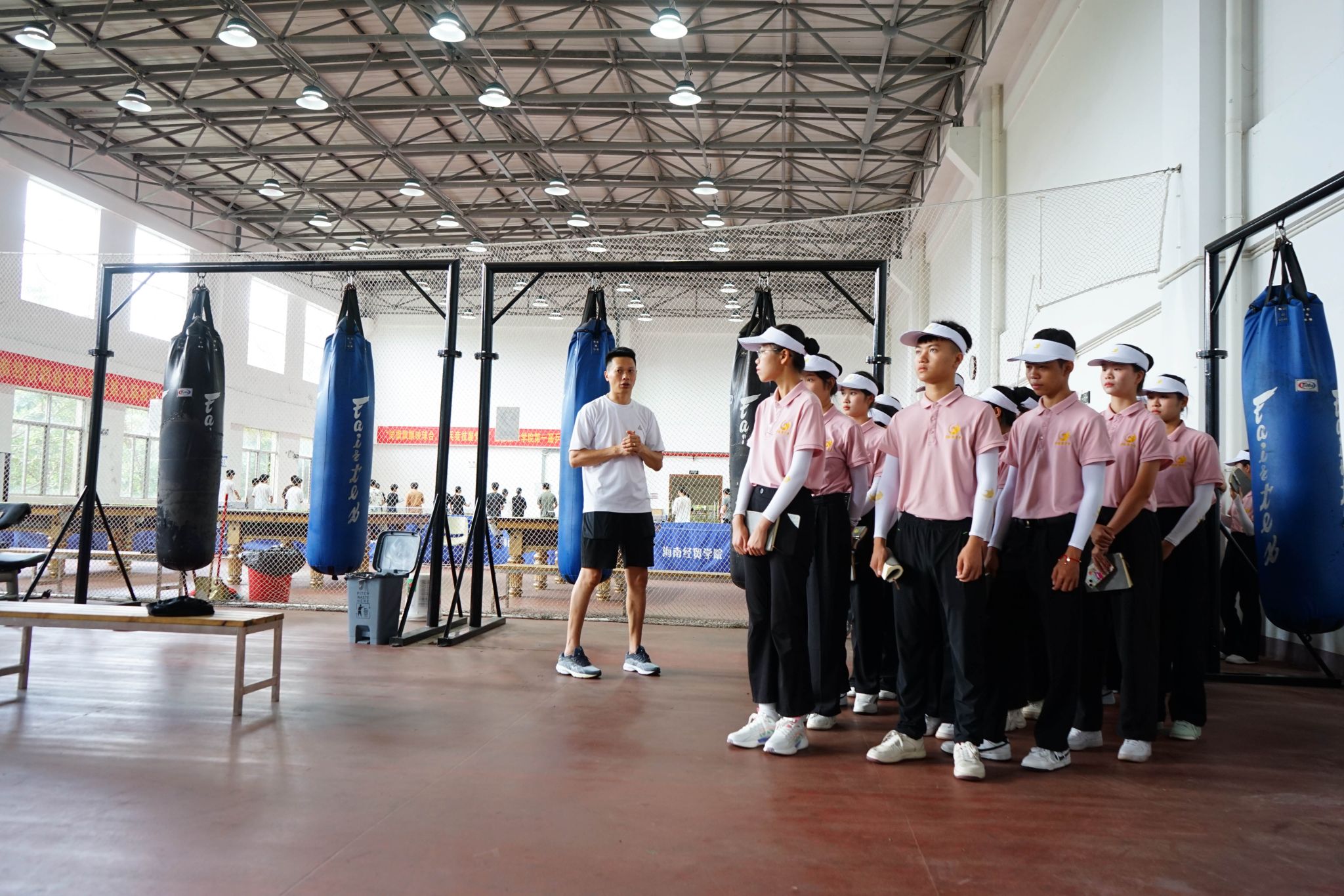 “我们学校有两个标准体育场,你们的学长学姐们很喜欢来这里跑步、健身、锻炼身体。”体育与健康学院陈达春老师带领海南省商业学校休闲体育和高尔夫专业的同学们参观了学校室内外体育场所,介绍了体育课堂教学设备。大家来到篮球场、风雨操场、体育馆、游泳馆等地,沉浸式感受大学体育课堂,对于体育健康相关专业有了更加充分的了解。