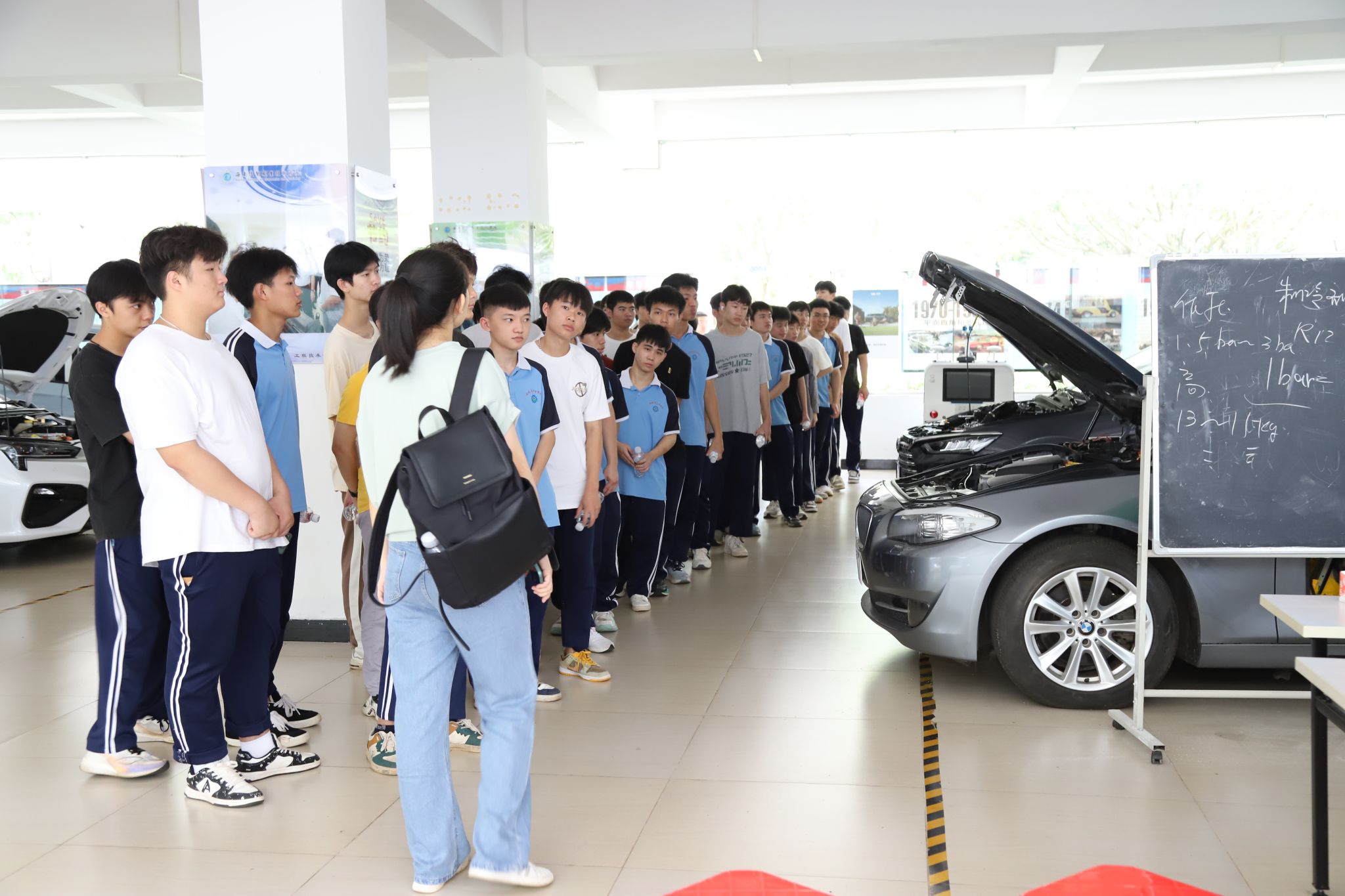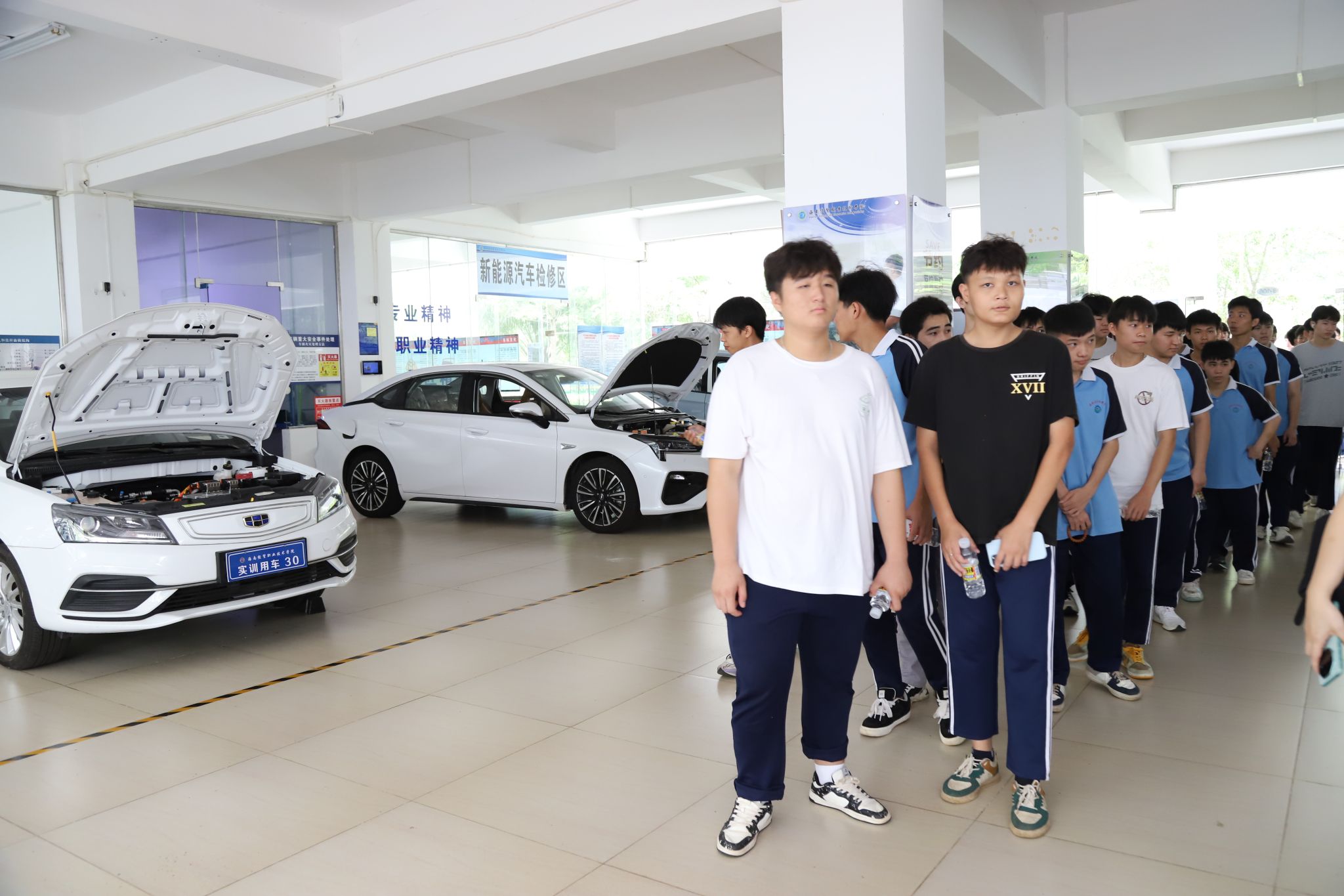 海南省高级技工学校2021级汽车检测与维修技术专业的同学们来到机电与汽车工程学院。符晓芬老师带领同学们参观了汽车检测实训室,让大家了解新能源汽车技术和智能网联汽车等先进设备;走进了理想汽车产业学院,向大家介绍了理想汽车企业文化。同学们还参观了学校图书馆并在一号教学楼进行了座谈。大家积极参与汽车文化有奖竞猜、汽车知识有奖问答等活动,现场气氛火热。