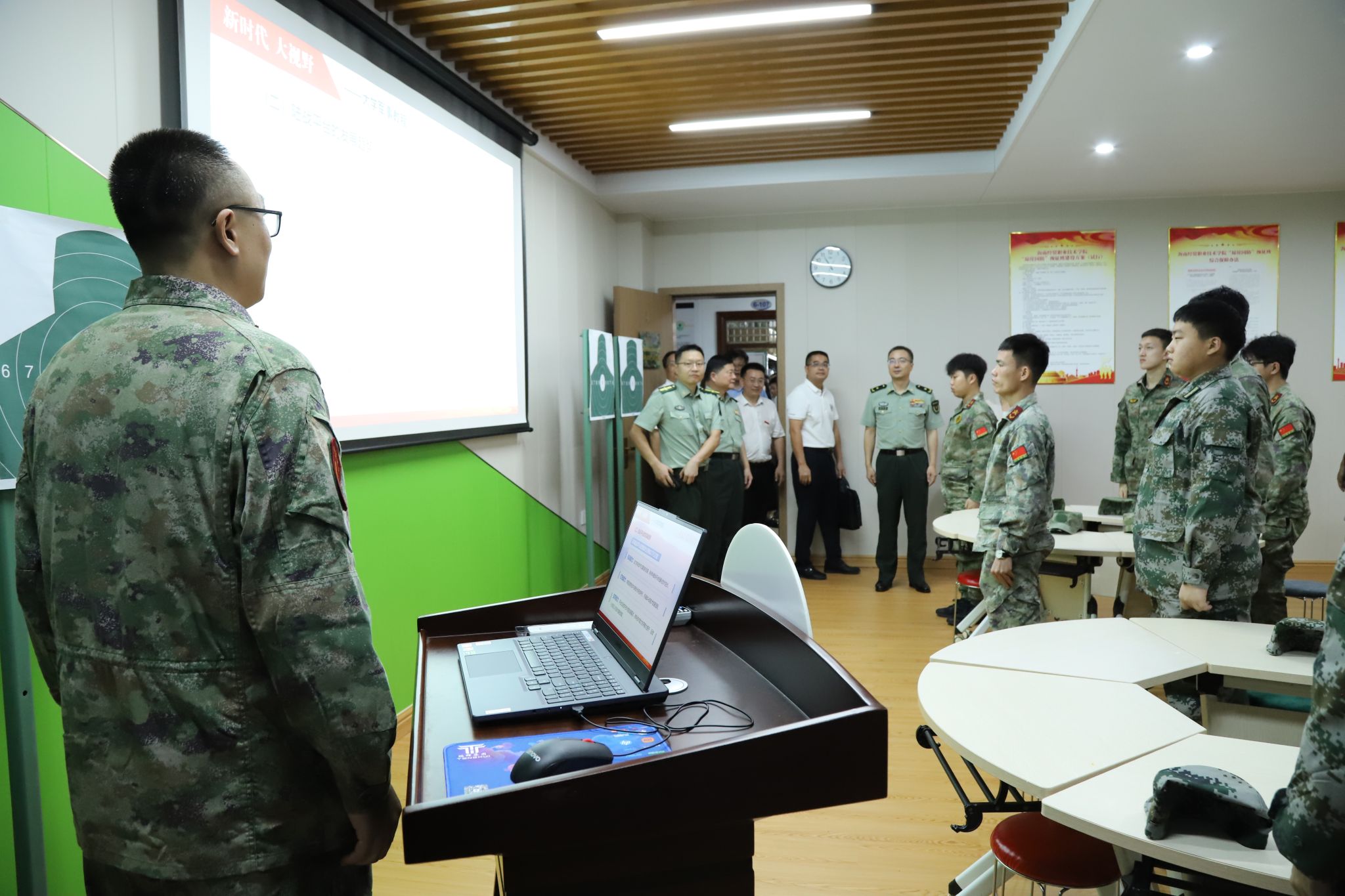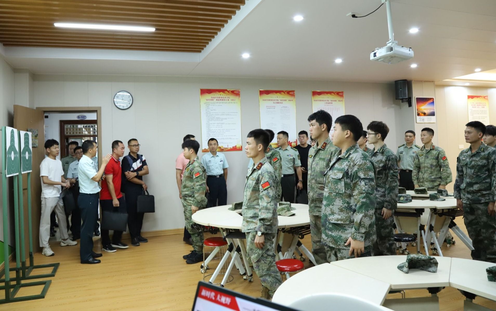 参观学校“琼崖国防”国防预征班建设情况