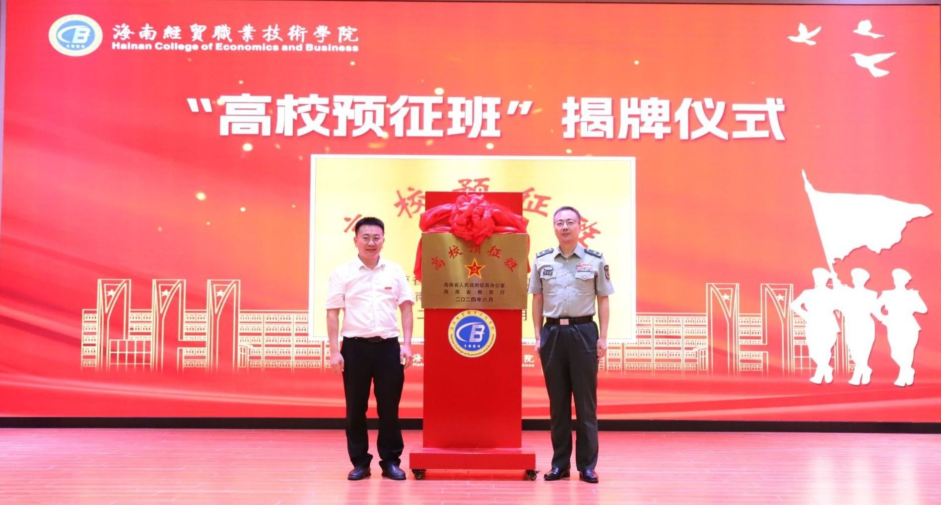 陈军栋,betway西汉姆联官网党委副书记、院长崔昌华共同为全省首个高校国防预征班——betway西汉姆联官网“琼崖国防”国防预征班揭牌。