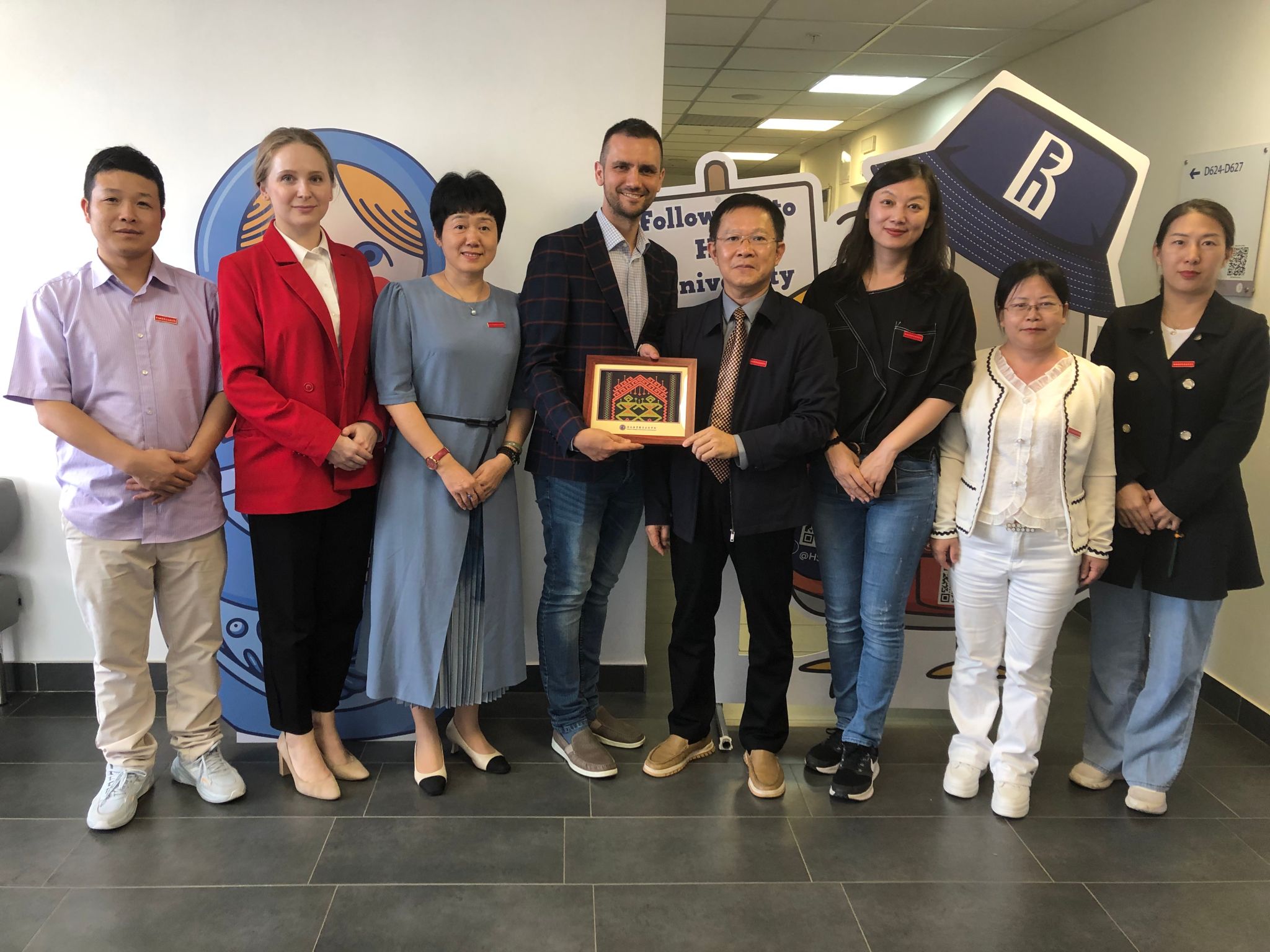 海经贸代表团访问白俄罗斯国立经济大学,与该校外事副校长莫洛佐维奇等人就两校合作办学进行交流讨论,并达成初步共识。海经贸代表团还与在白俄罗斯国立经济大学留学的海经贸毕业生进行座谈,了解他们在俄学习、生活等情况。