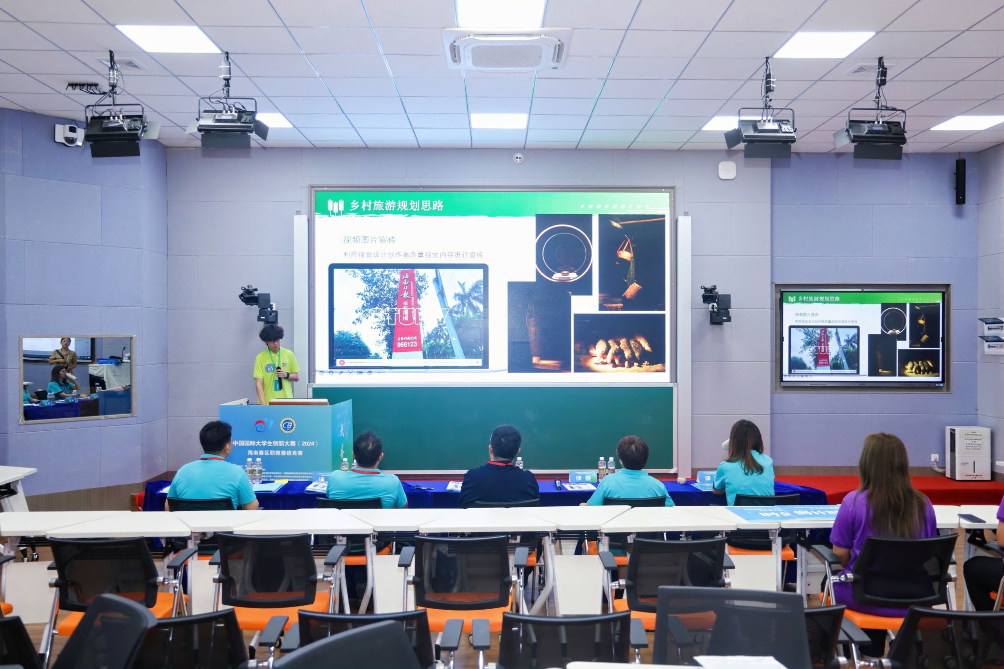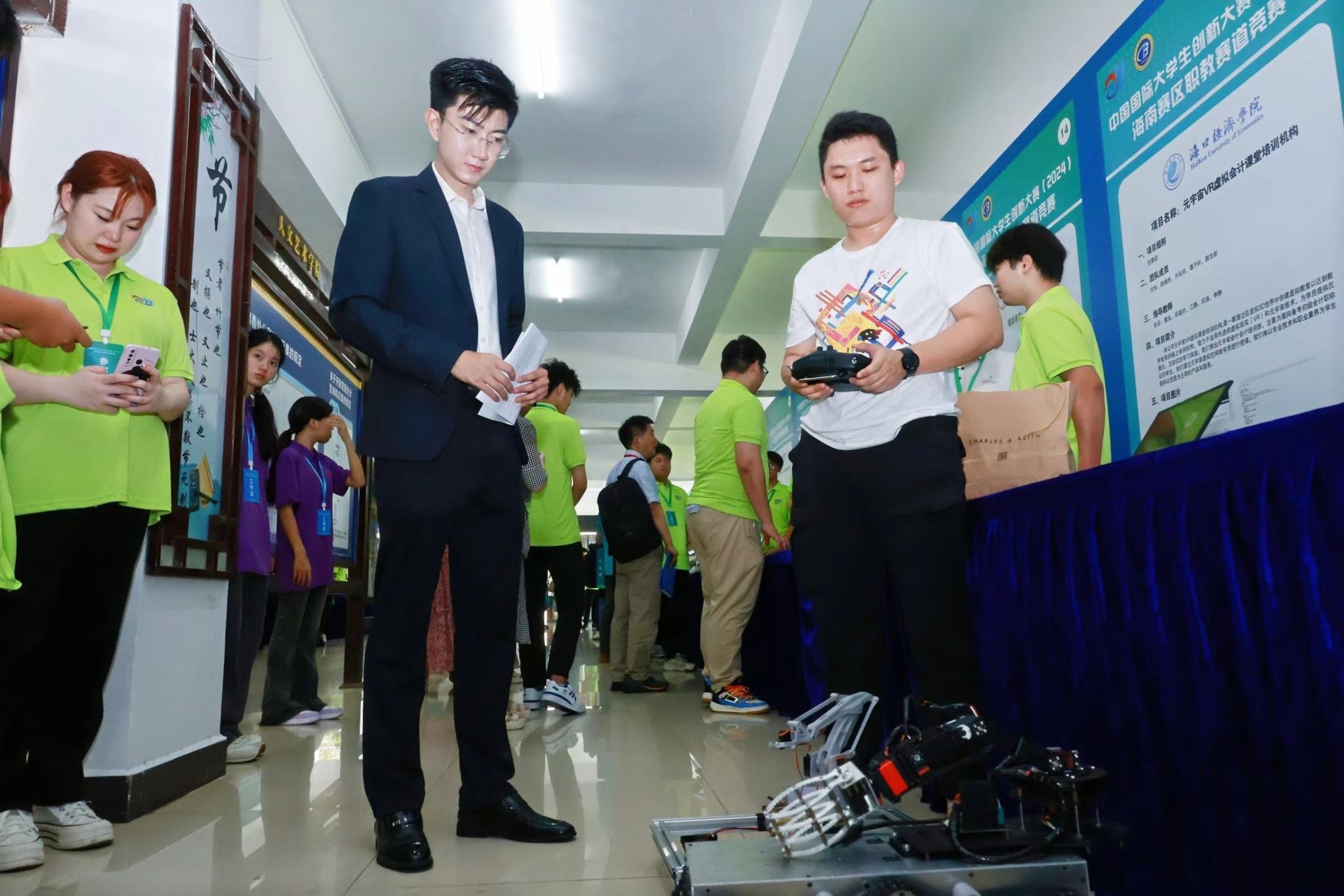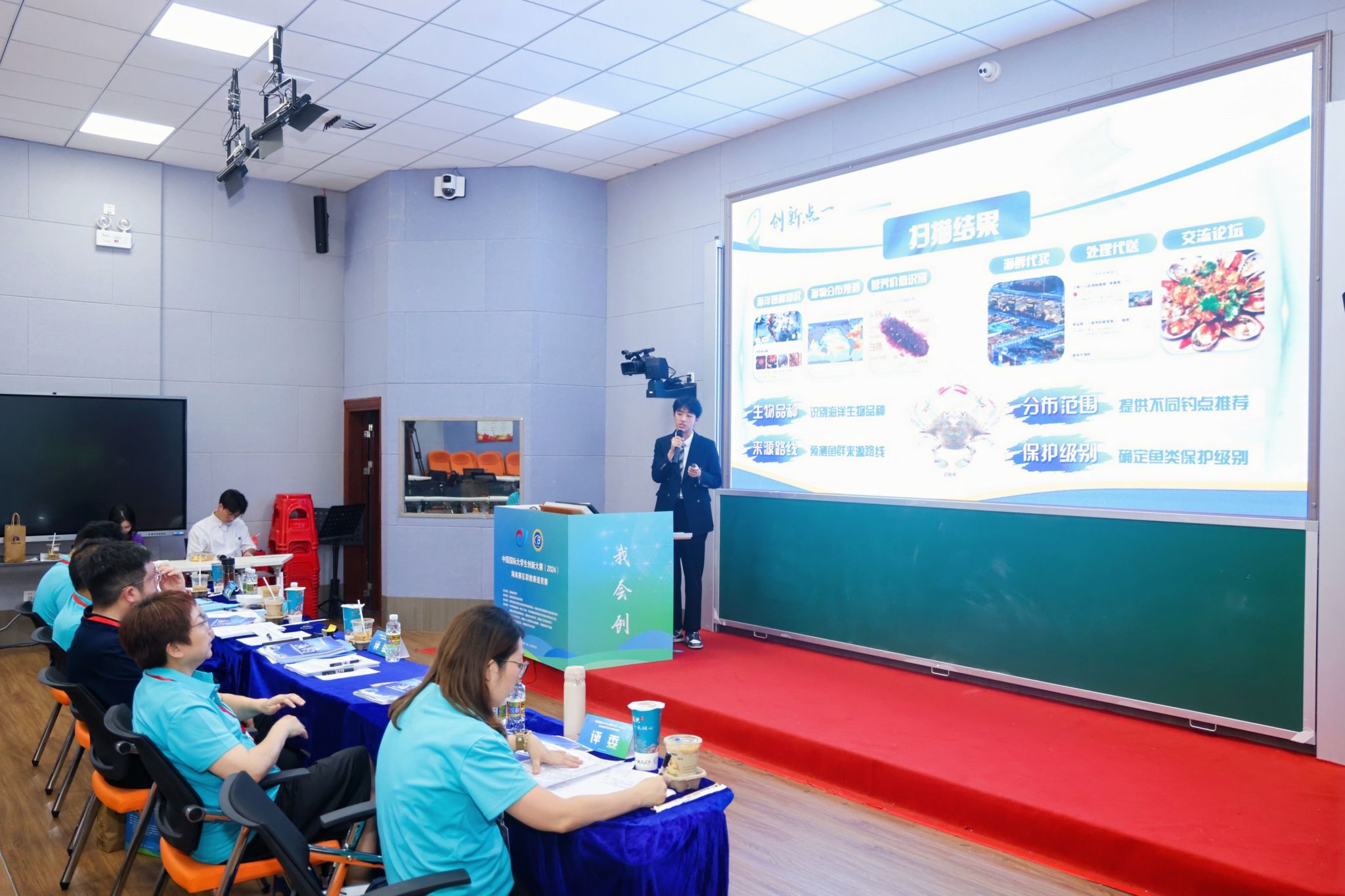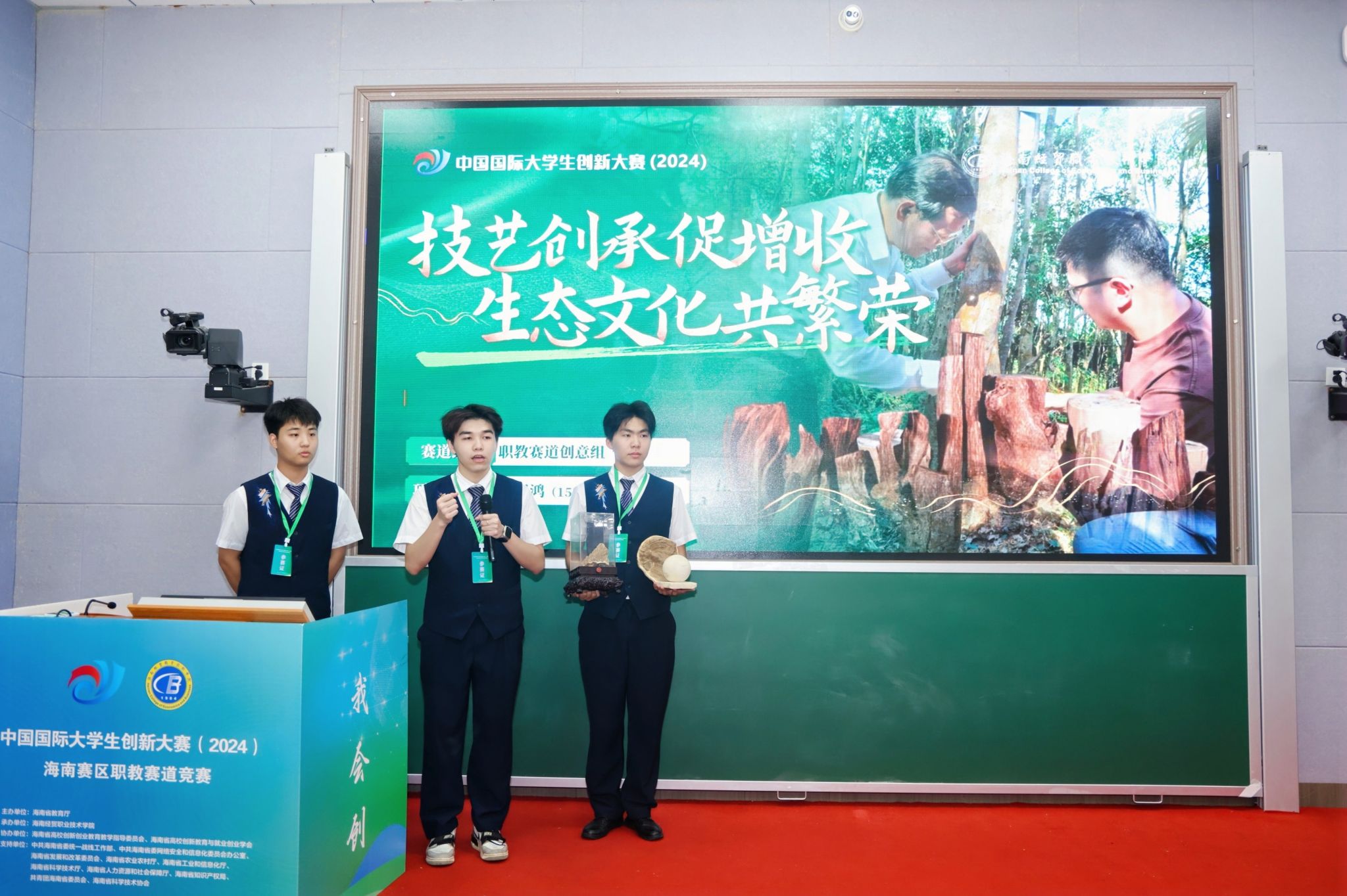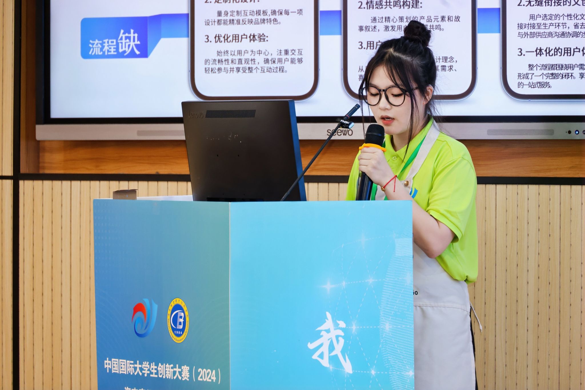 海经贸参赛选手们的项目作品创意十足、别出心裁,让人眼前一亮。有关注可持续生态领域的创新技术,有新媒体让思政课焕发活力的巧思,有关注当下休闲旅游产业的创业项目,也有农业、养生、智能化方面的灵感碰撞……充分展现了海经贸学子的优秀才智和创新创造热情。赛场上,选手们配合默契、思路清晰、自信大方,用充实的内容和精彩的汇报将项目内容完美地呈现。
