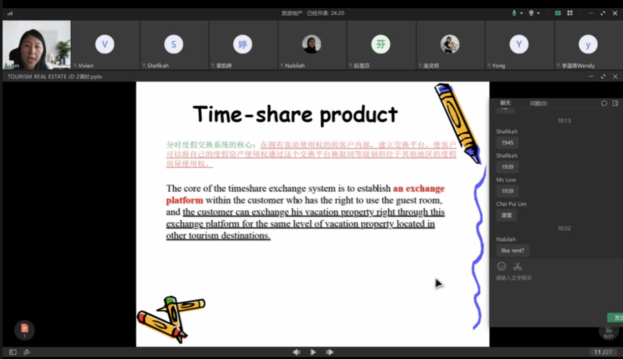 本次培训为期4天,从旅游服务礼仪、旅游地产、旅游市场营销、旅游实用汉语——住在海南等4个教学模块进行。旅游地产、旅游市场营销教学模块紧密结合当前旅游热点,详细介绍了相关基本概念和发展历史,深入分析了中国地产和旅游市场的实际情况及行业典型案例,有效促进了学员对专业知识的掌握和对中国旅游市场的了解。旅游服务礼仪教学模块以中式旅游服务礼仪为例,全面阐述了旅游服务人员在形象塑造、行业沟通等方面的共性化礼仪规范与要求。旅游实用汉语——住在海南教学模块介绍了海南的酒店类型及房间种类,并通过情景对话训练,帮助学员们掌握酒店服务用语及游客实用汉语,提升了他们的汉语运用能力。