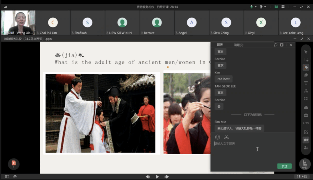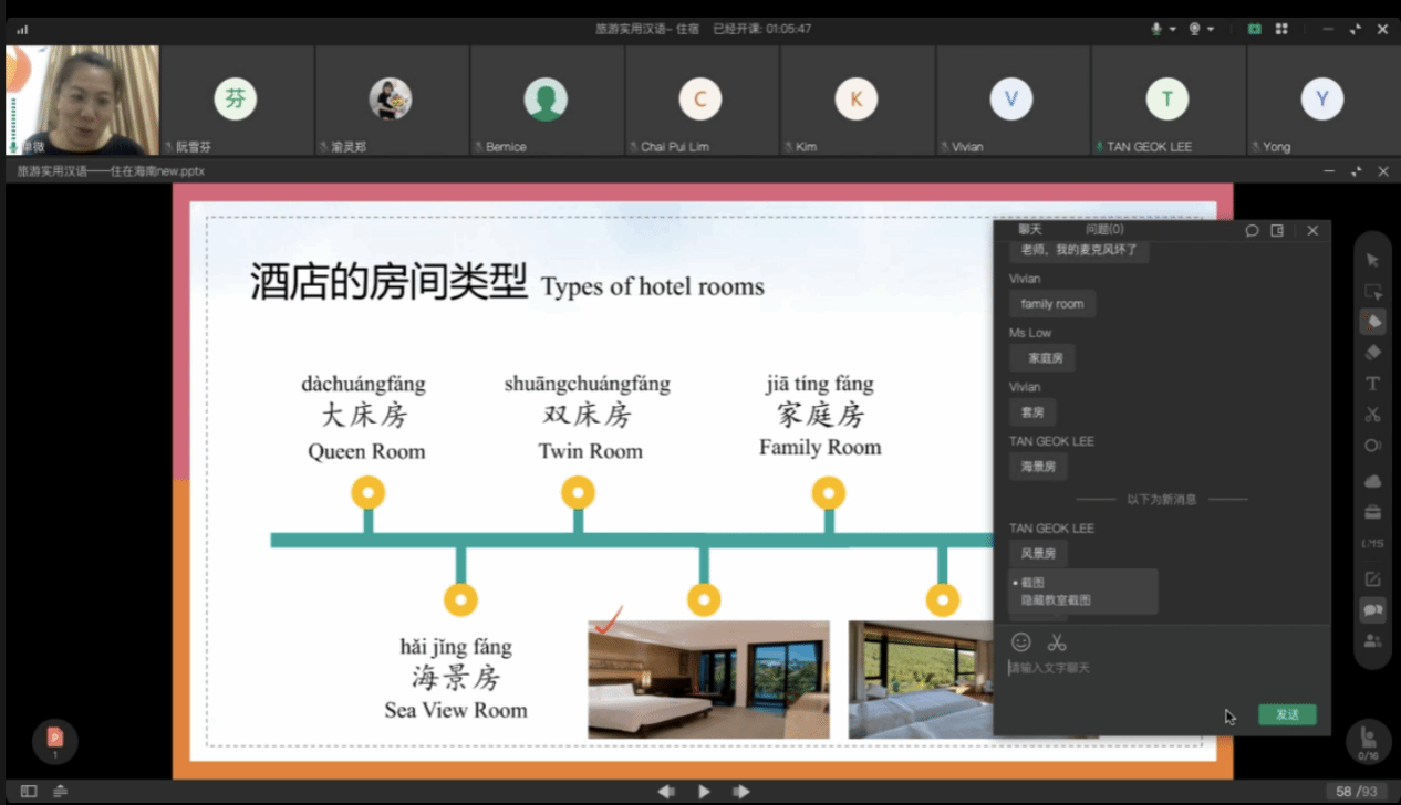 近日,betway西汉姆联官网与马来西亚北吉隆坡国际学院合作共建的中文学习测试中心(以下简称“中心”)开展“中文+旅游管理”线上教学培训活动。来自马来西亚北吉隆坡国际学院师生、管理人员及中资企业员工等共计101人次参加培训。