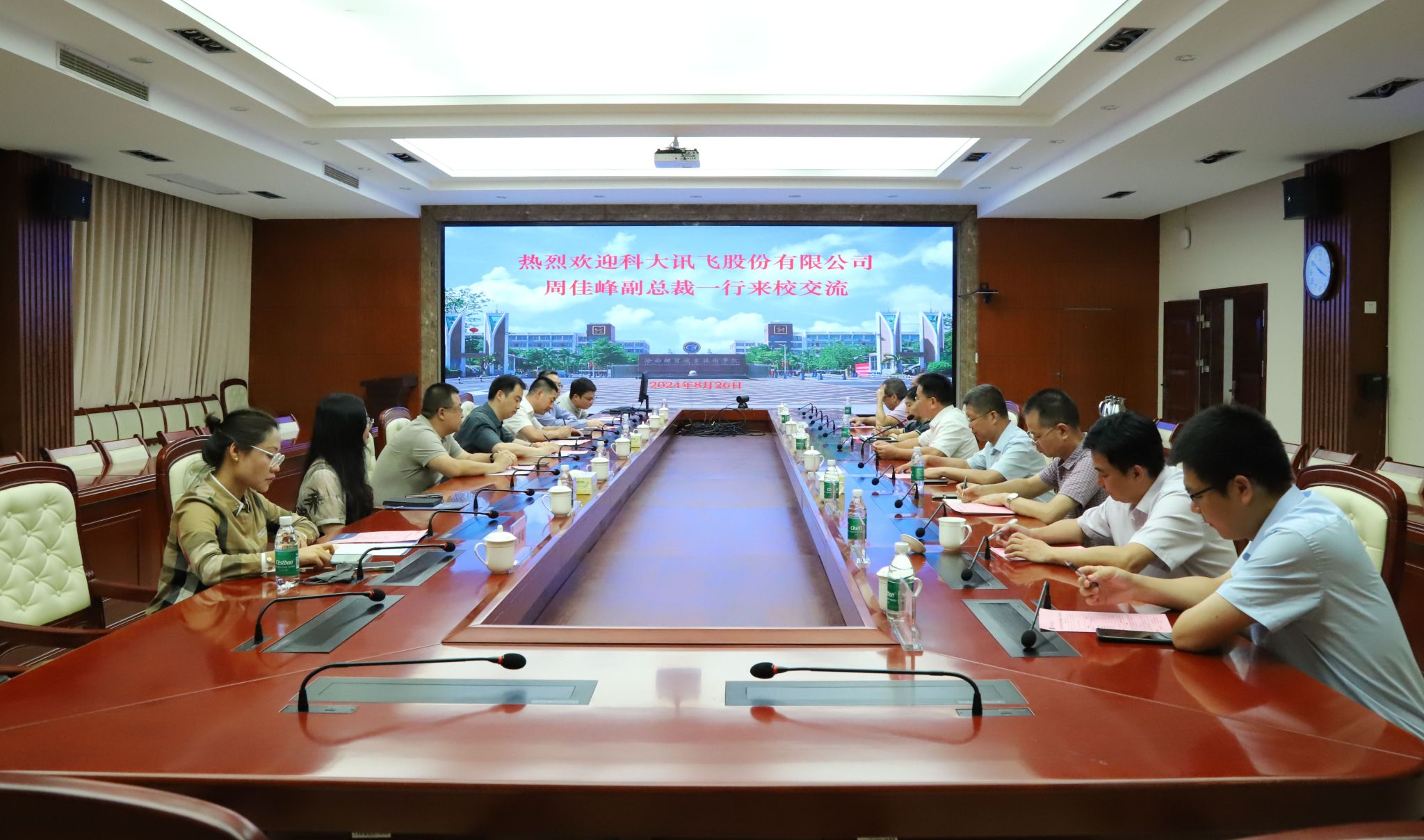 2024年8月26日,科大讯飞股份有限公司副总裁周佳峰一行8人来到betway西汉姆联官网,就校企深入合作进行调研交流。学校党委副书记、校长崔昌华,党委委员、副校长刘文斌热情接待了周佳峰一行。